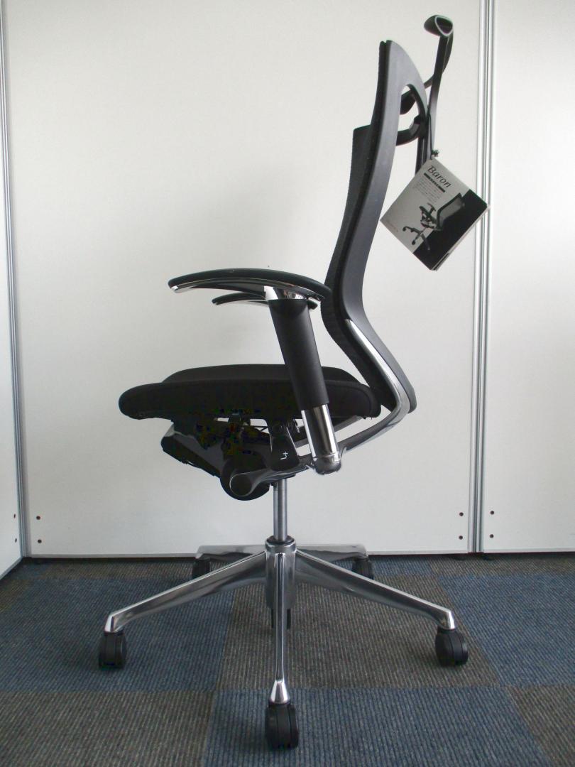 発売当時、既に人気を博していたオカムラの高級チェア、コンテッサから手元で座高調整ができるスマートオペレーション機能を取り除くなどしてリーズナブルにしたのがバロンです。その際に少しだけコンパクト化されました。そのことが、日本人の体格、日本のオフィス、家庭環境に適し、国内で多くのシェアを獲得する要因の一つになったのではないかと思います。