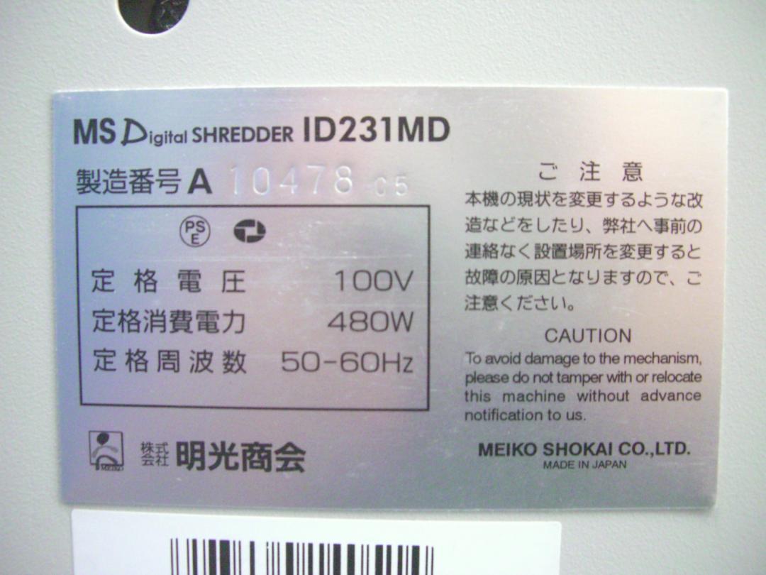 【中古】 MS-ID231MD 明光商会 シュレッダー 161525