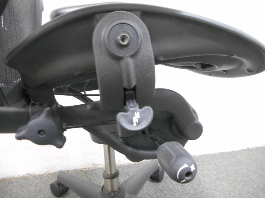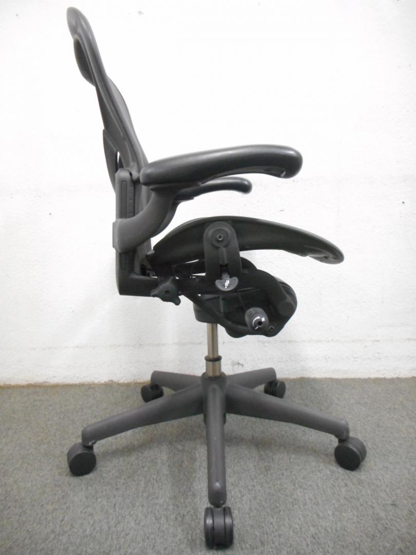 【座 上下昇降 ガス圧不良につき特価!】【オフィスチェアの最高峰!圧倒的人気、知名度を誇るオフィスチェア!肘付ハイバックチェア入荷!】 ■ハーマンミラー(HermanMiller) アーロンチェア 肘付ハイバック ■固定肘 ■背面・座メッシュ ■ブラック ■スタンダード仕様 ■Bタイプ 【上下昇降不可商品につき、中古保証対象外商品となります。】