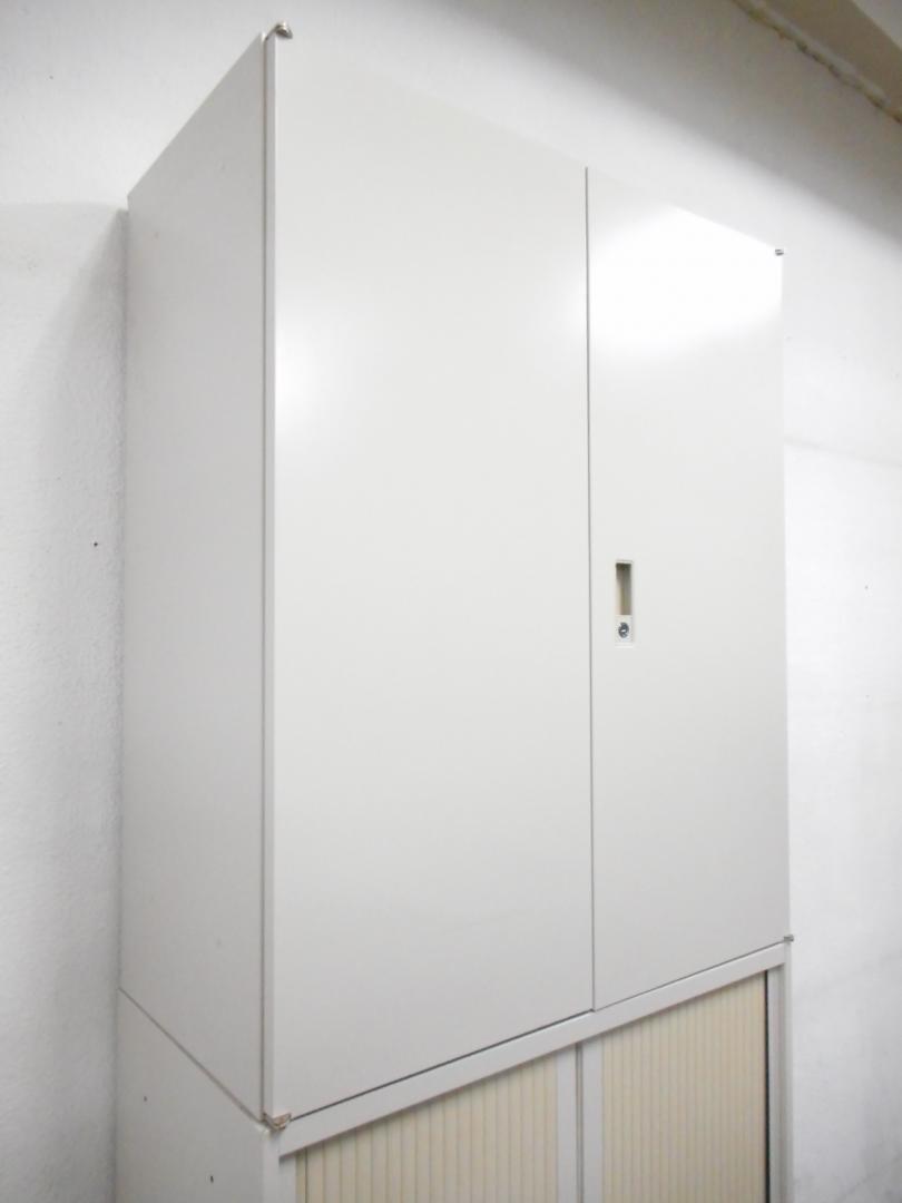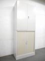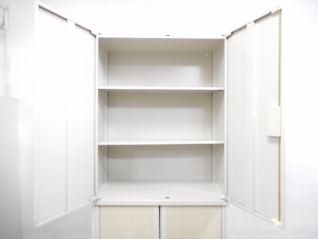 上置きは両開き、下置きは両開きシャッター扉タイプの書庫となっております。