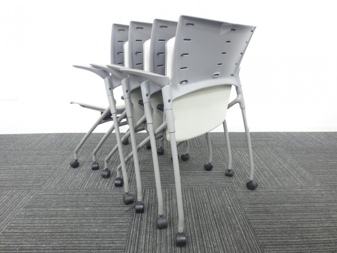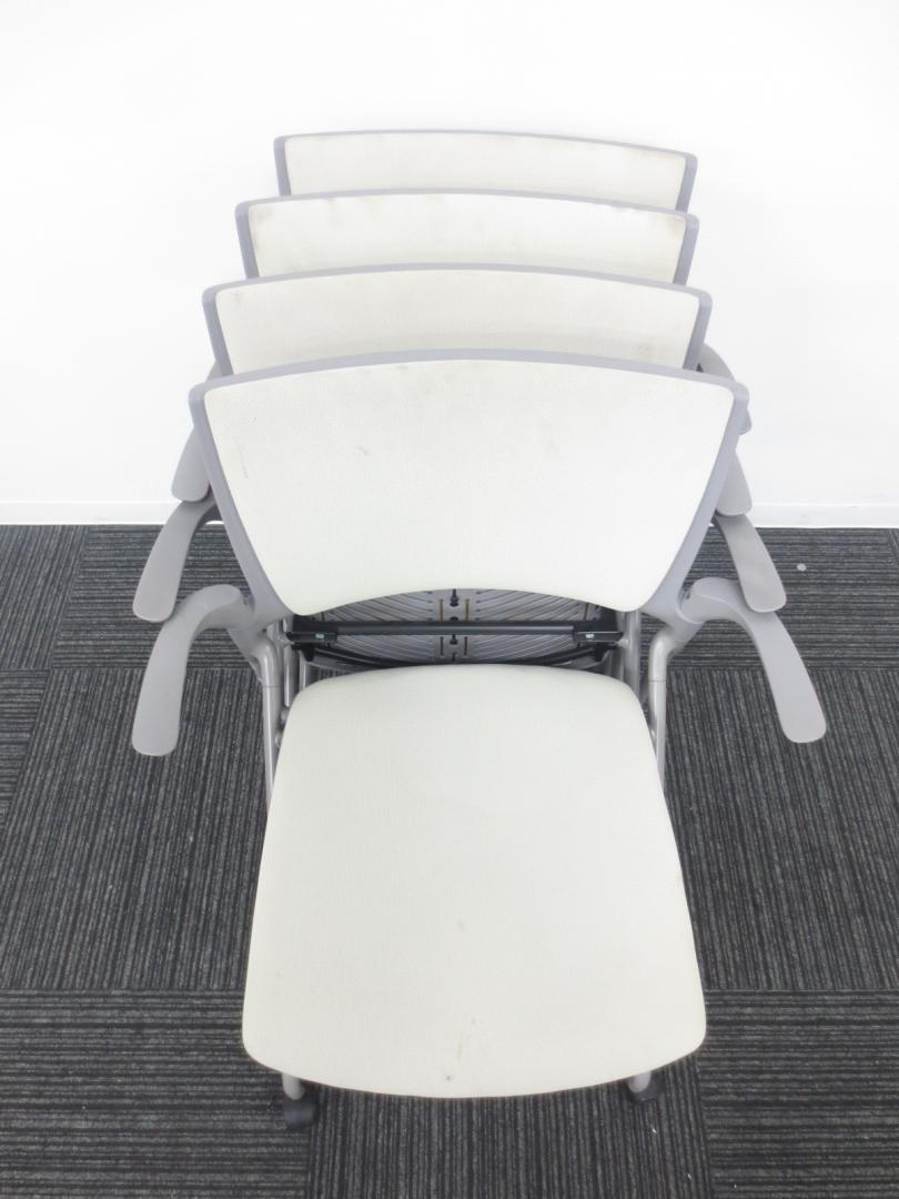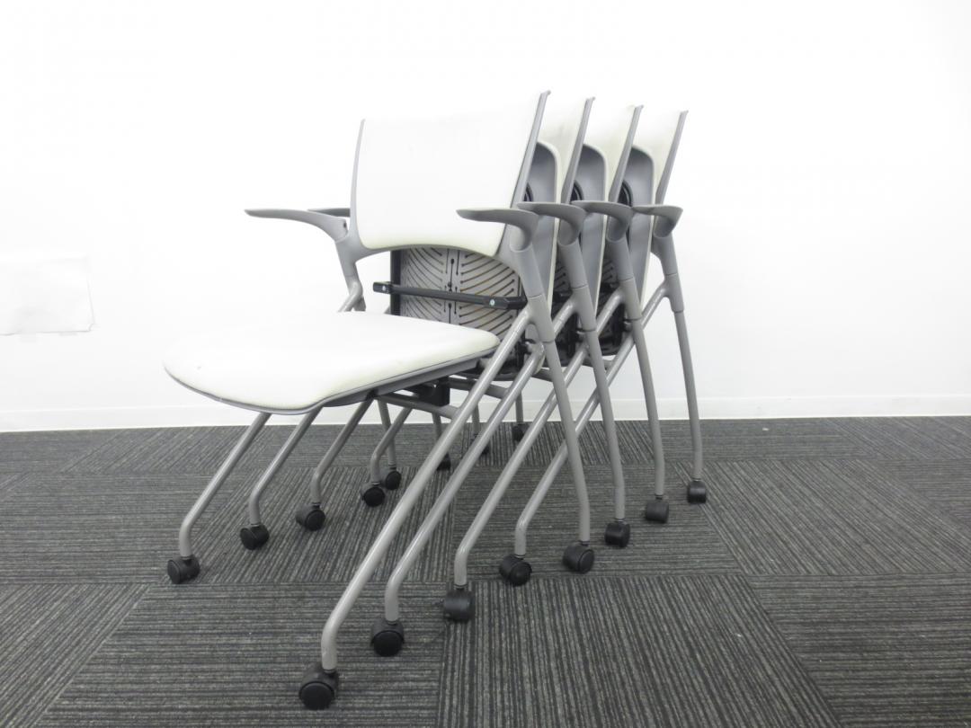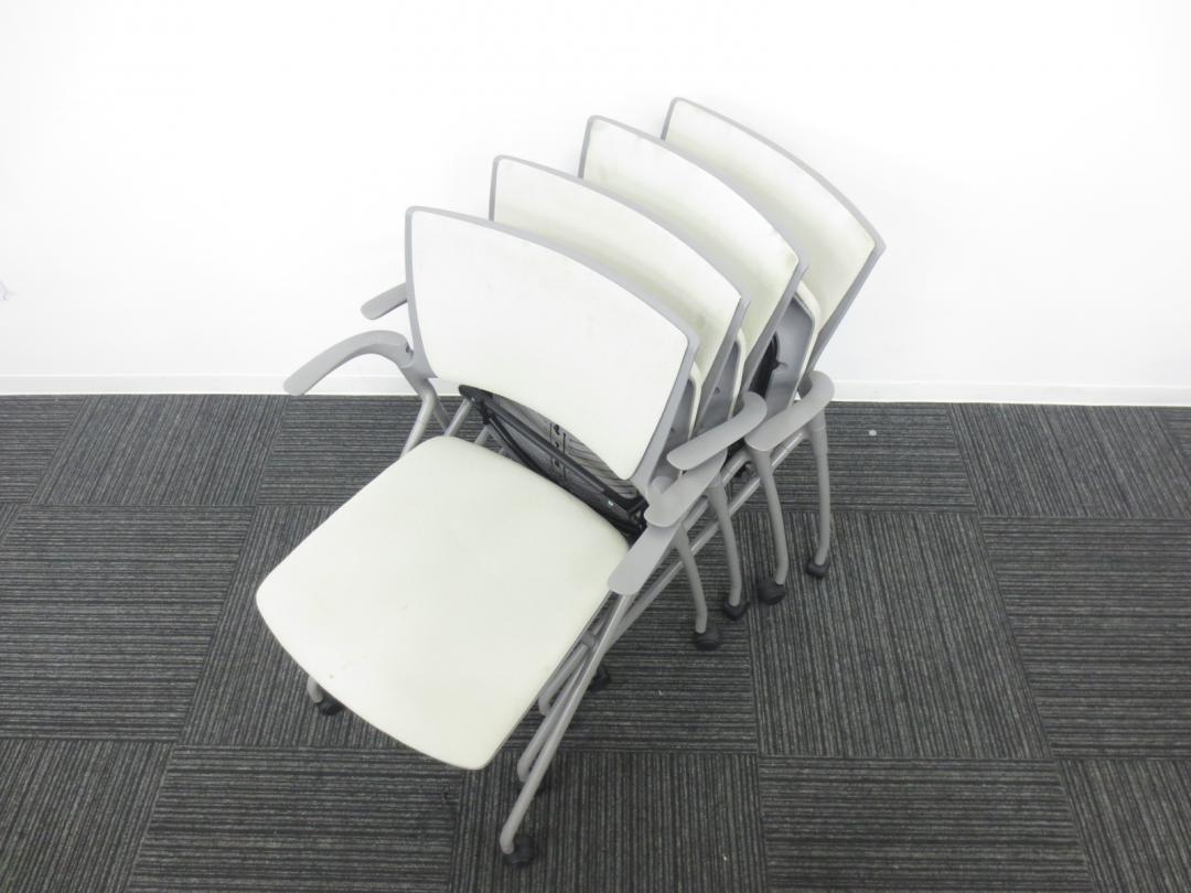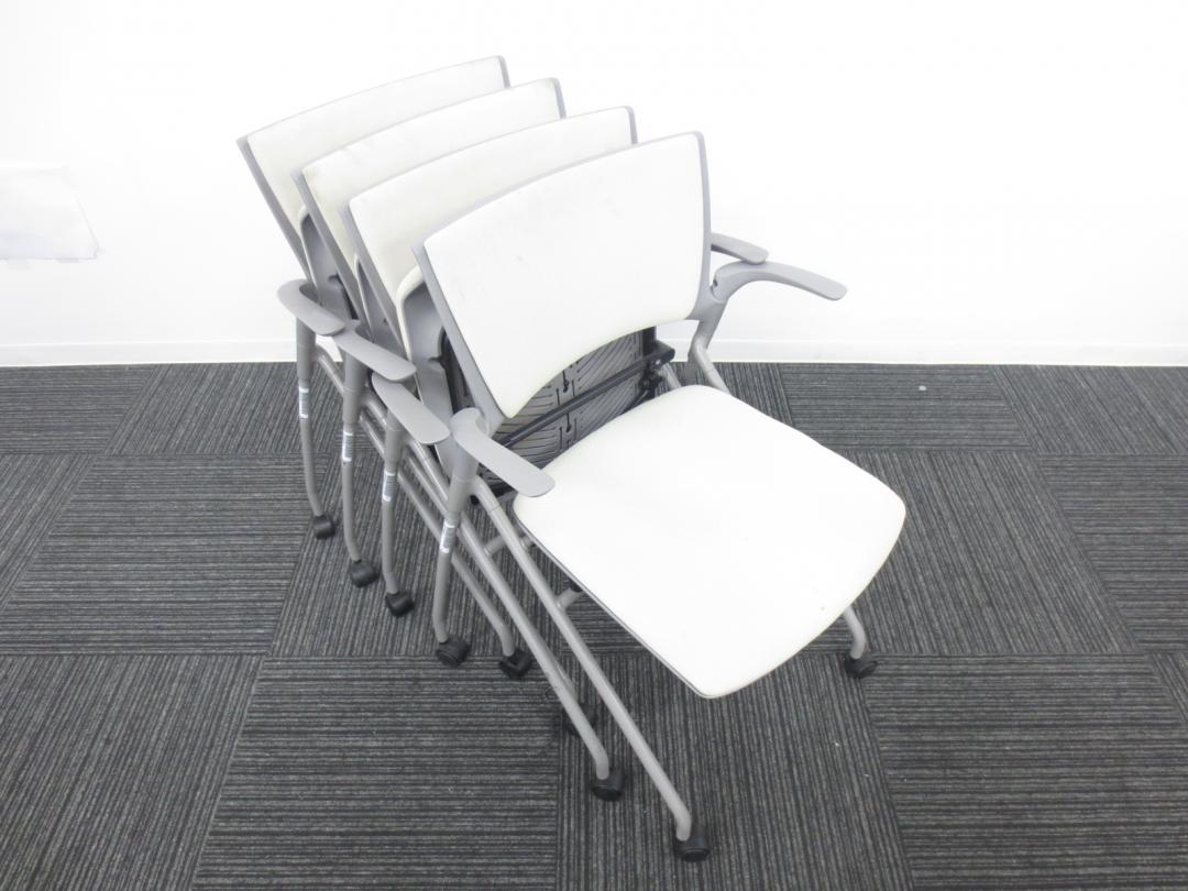 【4脚セット商品】■イトーキ製 ■ミーティングの時にぴったり会議用チェア■ネスティング収納可能 ■肘付き ■ホワイト・グレー色【相模原・町田店】- 春日部・越谷店