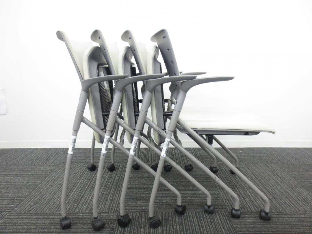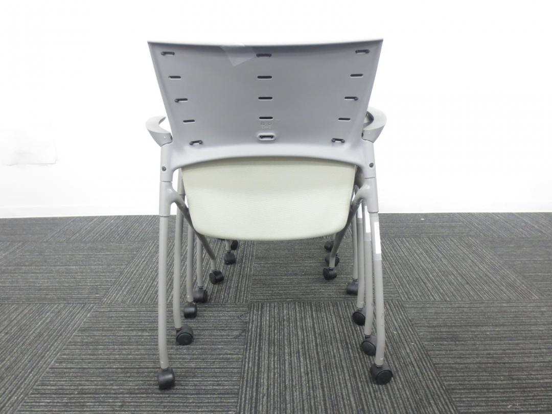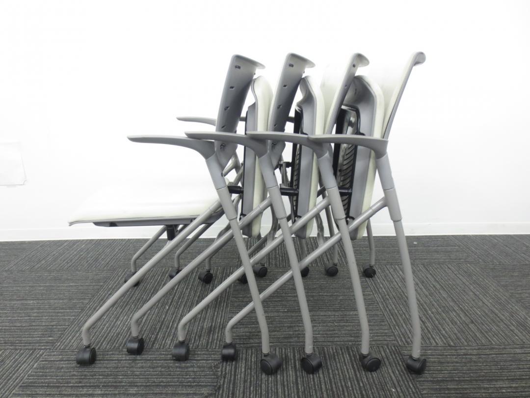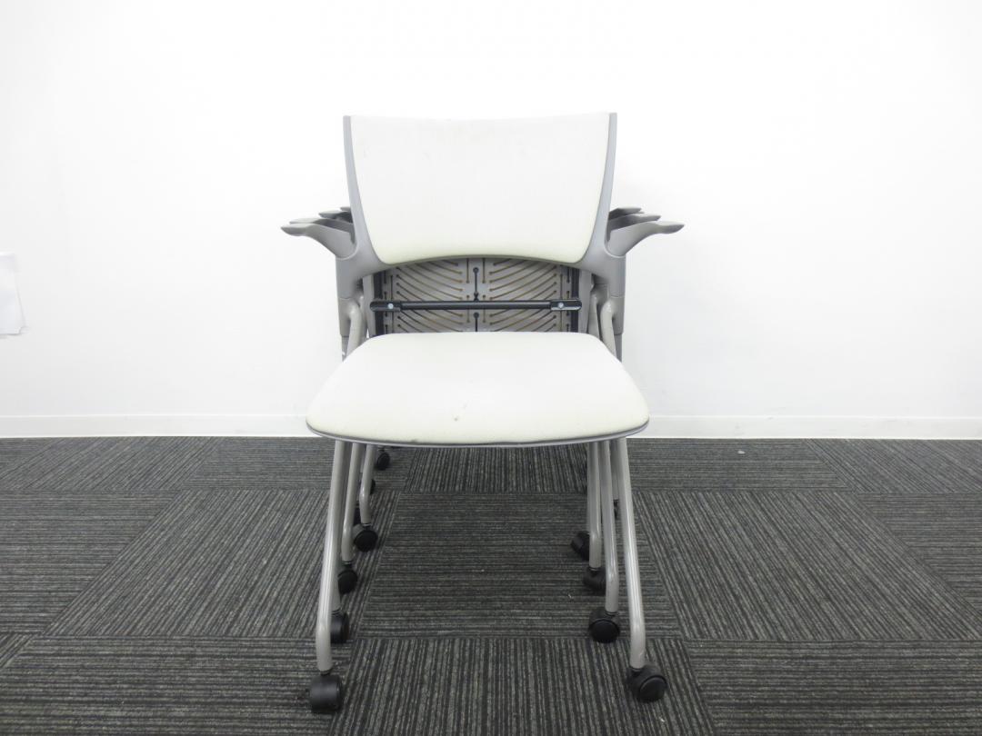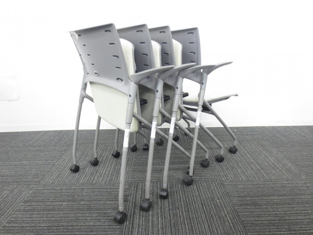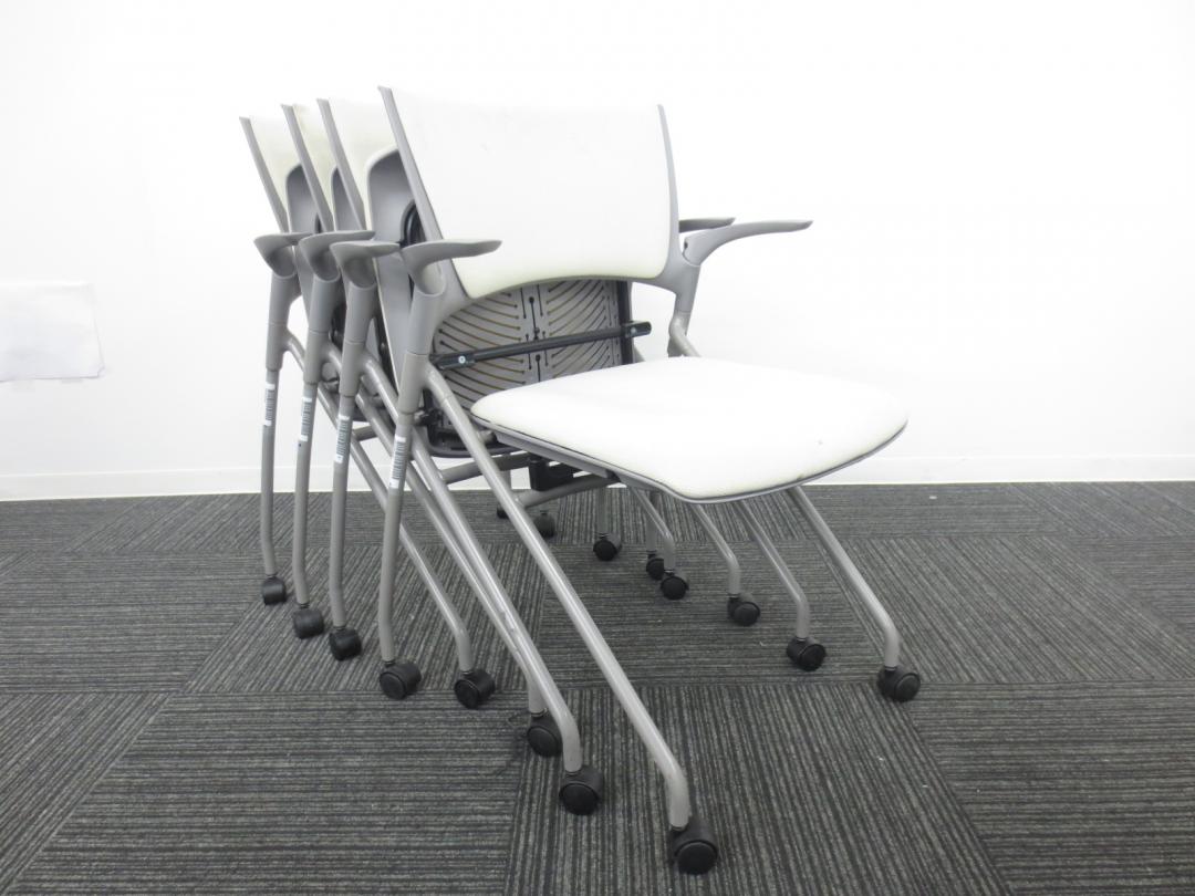 【4脚セット商品】■イトーキ製 ■ミーティングの時にぴったり会議用チェア■ネスティング収納可能 ■肘付き ■ホワイト・グレー色【相模原・町田店】- 春日部・越谷店