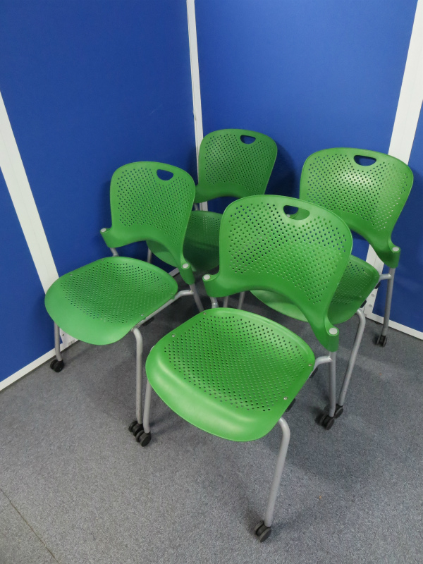 【4脚セット商品】~ハーマン・ミラー製のスタッキングチェア!鮮やかなグリーンカラー【中古オフィス家具】- 川崎店
