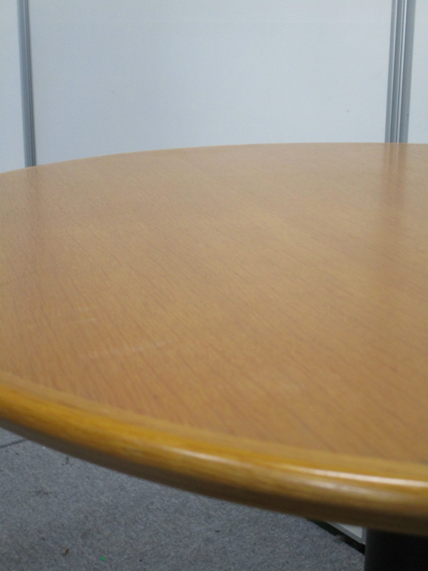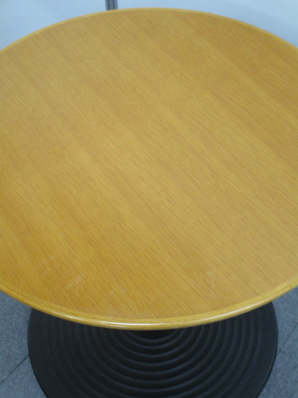 【1台入荷】しっかりとした1本脚の丸テーブル 木目天板 ご家庭用にも 直径750mm【中古会議用テーブル ミーティングテーブル】- 池袋店