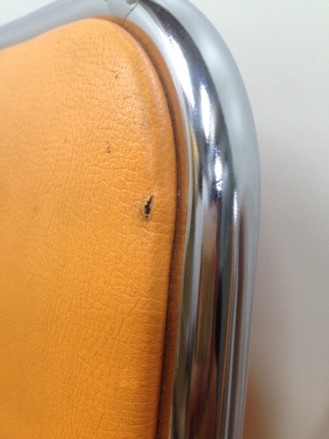 - かなり強い濃い黄ばみ・変色が商品全体にある。(例、座面・背もたれ、脚部等にある。)