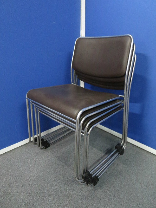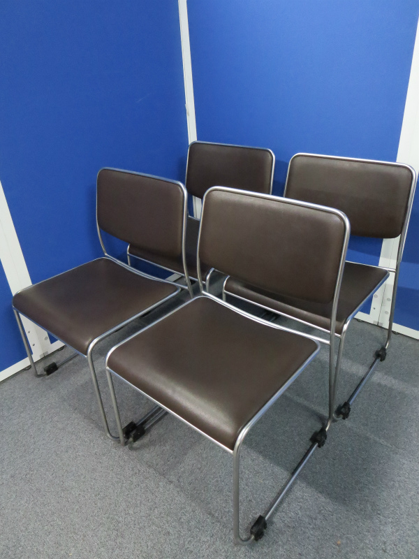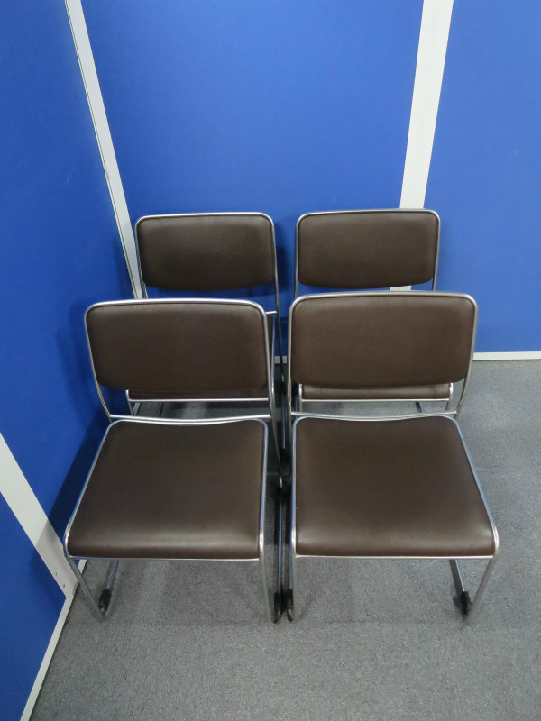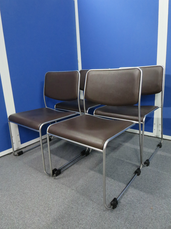 【4脚セット商品!】~オカムラ製のブラウンカラーのスタッキングチェア・4脚セット!【中古オフィス家具】- 川崎店
