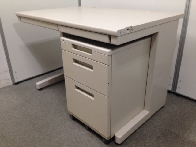 【関西倉庫在庫品】【引き出し・ワゴン付きで資料が多い事務作業担当者にオススメ!】■コクヨ製 BSシリーズ 片袖机 ■引き出し付き ■ワゴン3段 ■グレー【弊社使用欄:A01042822】