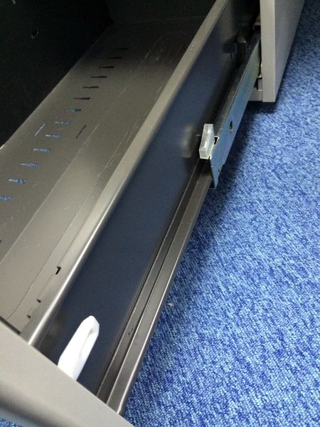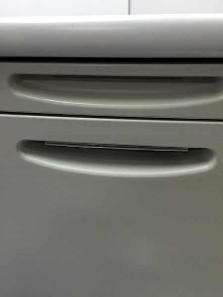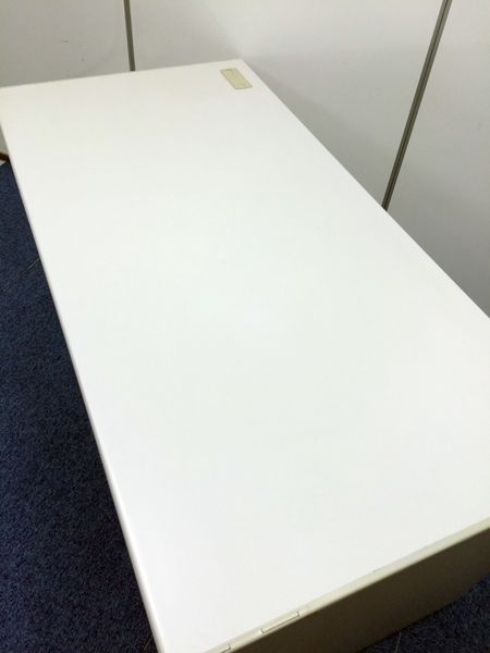 - 袖机のワゴンは、最下段がロング引出しになっており、従来より収納力120%アップ。
