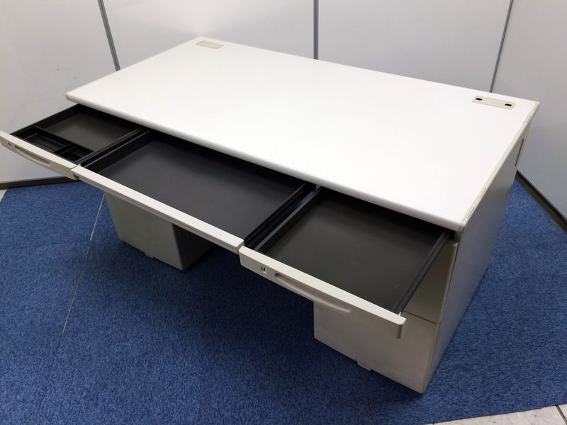 【在庫入替セール】上長席・役員向けサイズ オカムラ SDデスクシステム 両袖机 定番のW1400サイズ 汚れの目立ちにくいニューグレー 鍵付き シリンダー錠