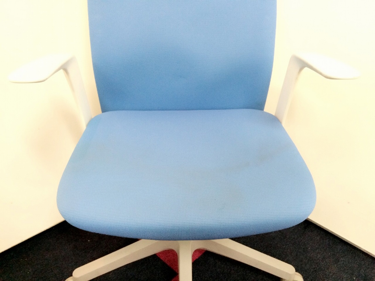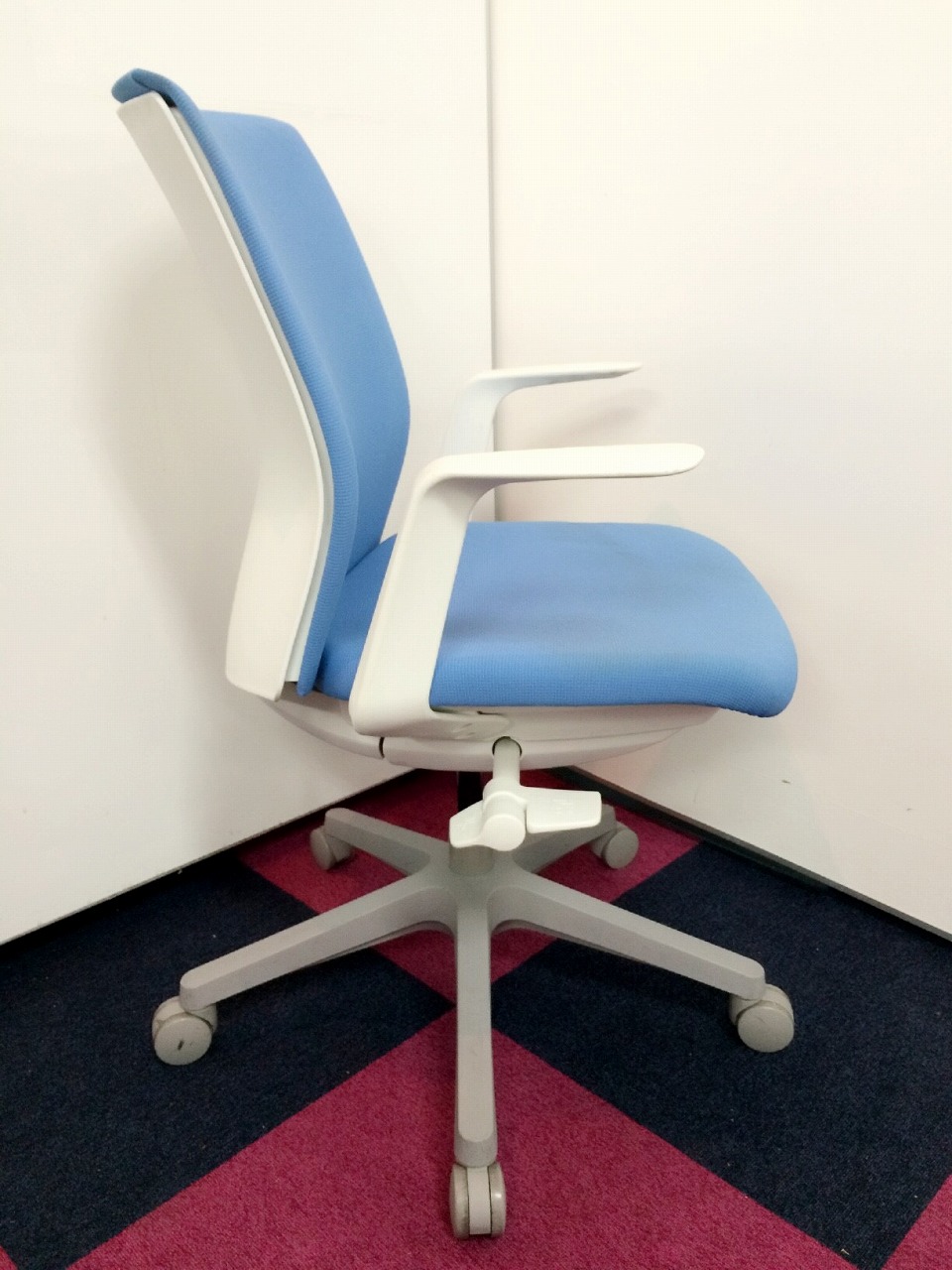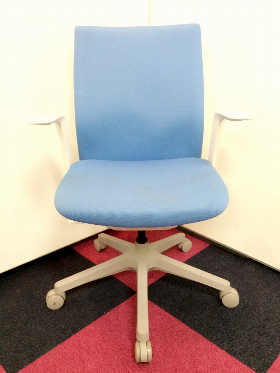 【4脚限定】~オカムラ製 オムネスチェア 鮮やかなブルー色 オフィスを際立たせるチェア~- 在庫数