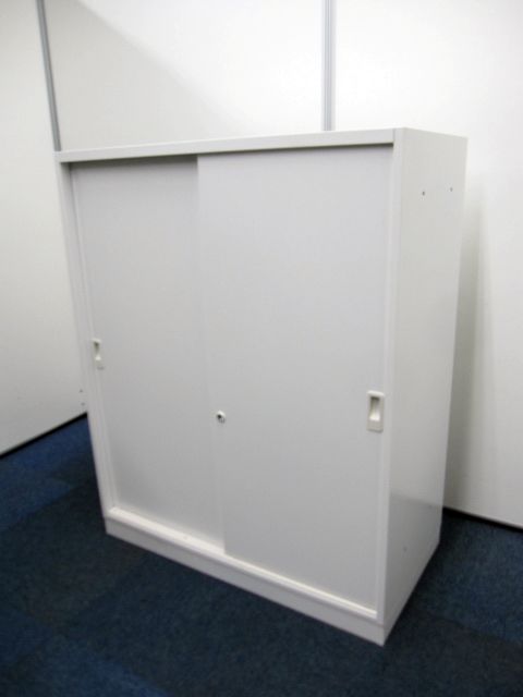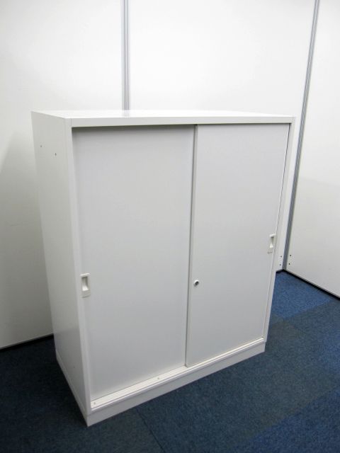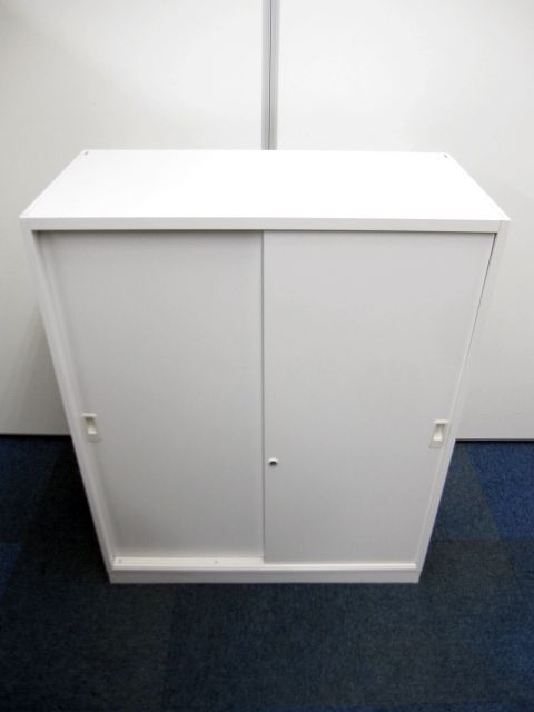 【おつとめ品】ホワイトの引戸書庫 ※扉の滑車部分が一部割れている為安い(衝撃で扉が外れる場合あり)- 品川・三田店