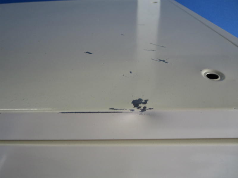- 目立つ箇所あり傷・凹みが多数、深い傷・凹みが一部ある。(例、天板、正面、背部、サイド部分にある。)