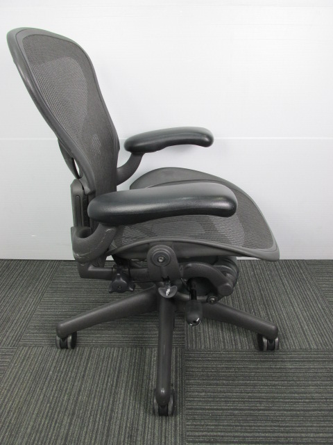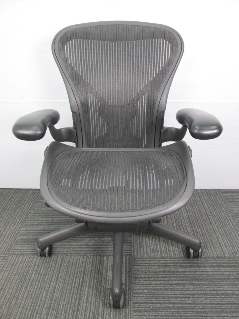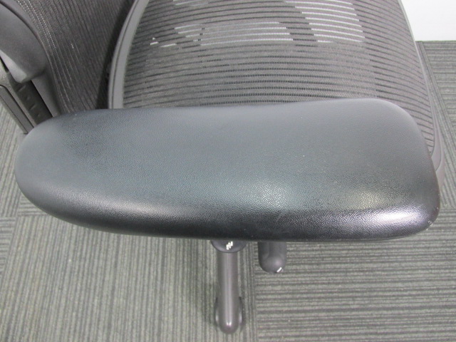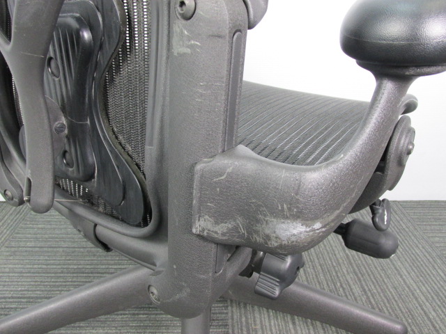 【座 上下昇降 ガス圧不良につき特価!】【オフィスチェアの最高峰!圧倒的人気、知名度を誇るオフィスチェア!肘付ハイバックチェア入荷!】 ■ハーマンミラー(HermanMiller) アーロンチェア 肘付ハイバック ■固定肘 ■背面・座メッシュ ■ブラック ■スタンダード仕様 ■Bタイプ 【上下昇降不可商品につき、中古保証対象外商品となります。】
