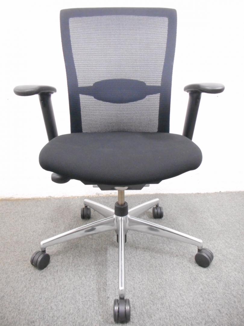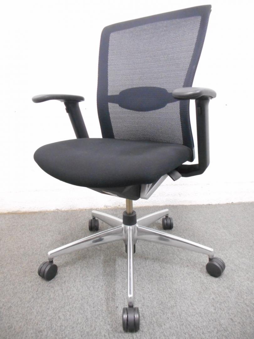 ■フォスターエトスチェア【ランバーサポート付】 ■ブラック・可動肘・アルミポリッシュ脚 ■コクヨ製・メッシュチェア【KOKUYO FOSTER・ETHOS】- 在庫数