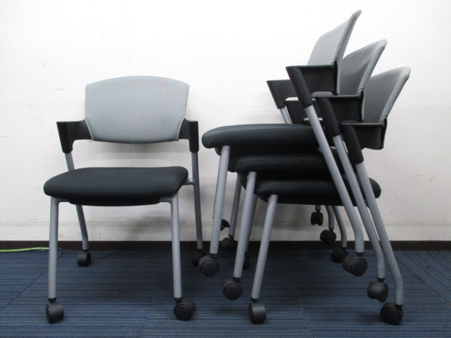 【1セット限定】【重ねて便利♪】■プロッティチェア4脚セット ■グレー背もたれ ■キャスター付き ■大人気シリーズ- 日本橋店