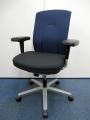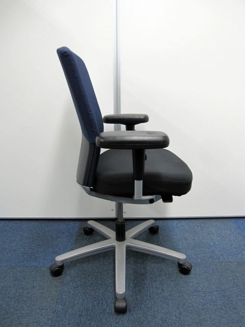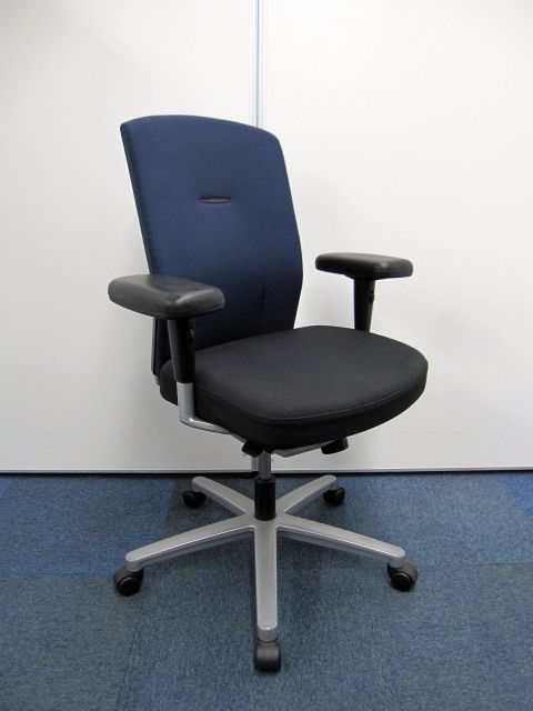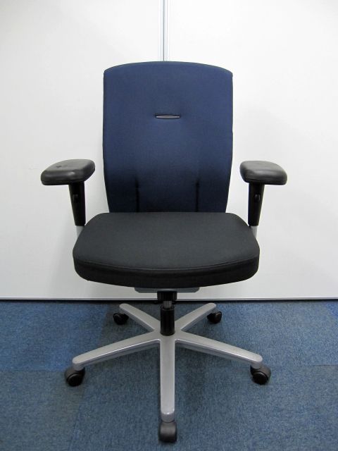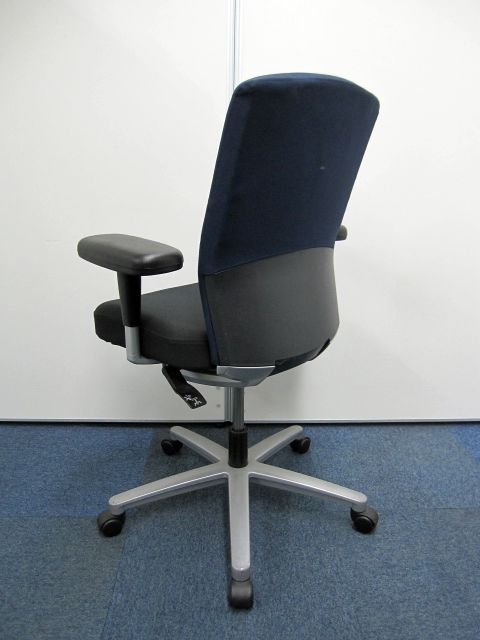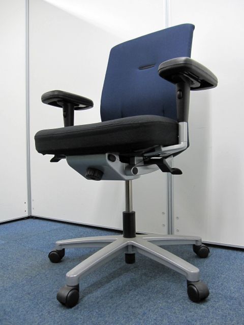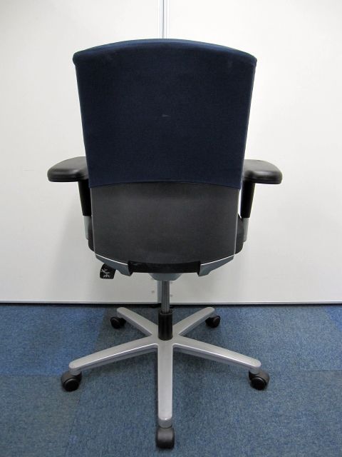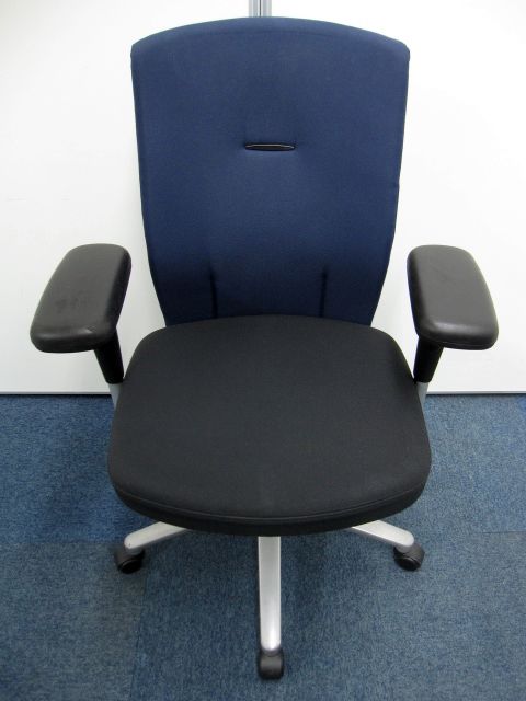 【オフィスチェア】ネクス(NEX)チェア ハイバック 可動肘 カラー:背・ダークブルー 【肘パッドに擦れが有る為安い】【お値段の割に高機能】- 品川・三田店