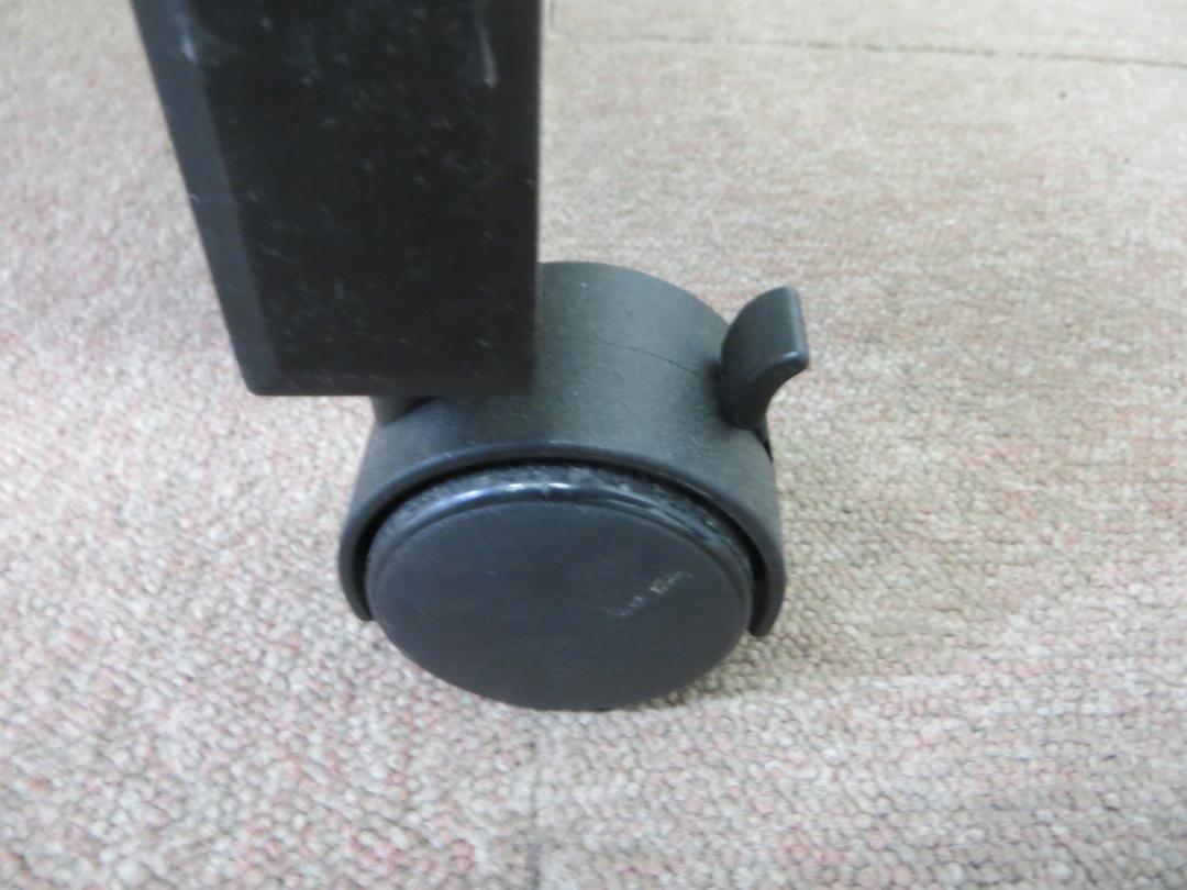 - 一部不具合あり天板歪み、アジャスター無し、キャスター使用不可ようなそのテーブルの本来の効用を果たすための機能以外の一部が使用不可な状態。(例、キャスターロッ ク機能使用不可、棚板無し等がある。)