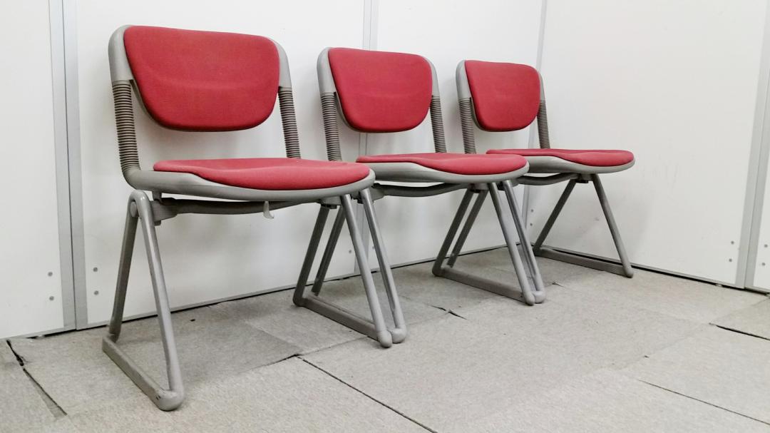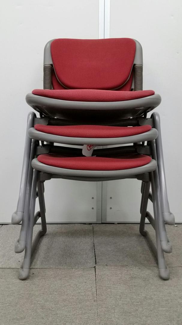 燃えるレッドカラースタッキングチェア!OAチェアにもある人気シリーズで座り心地抜群!- 在庫数