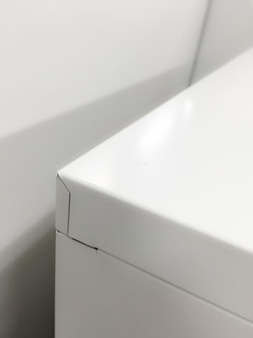 - あり黄ばみ・変色が広い範囲にうっすらある、、広い範囲にある。(例、天板、正面、背部、サイド部分にある。)