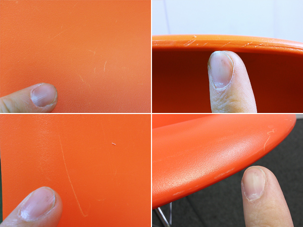 状態/シェルの背もたれ部分に目立つ傷がございます(写真6枚目、8枚目、10枚目左上参照)。