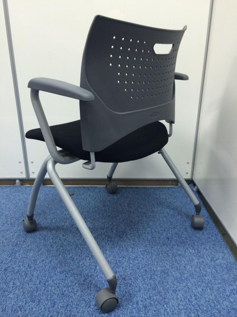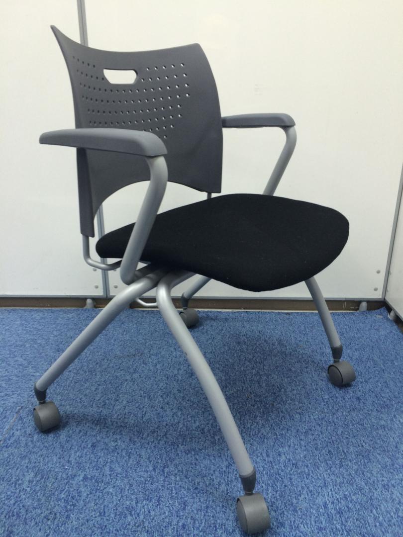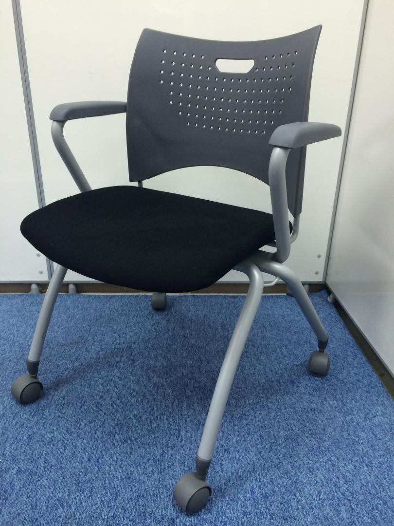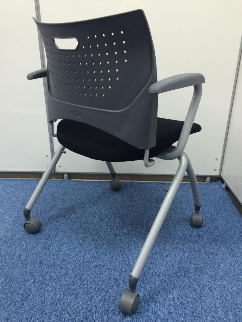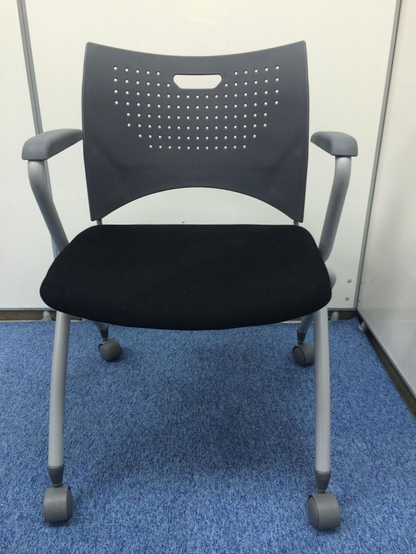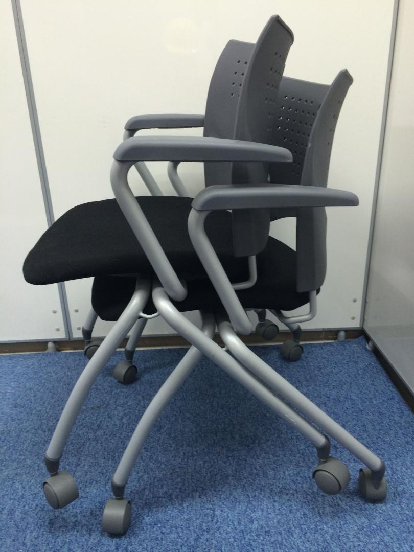 【4脚入荷】人気のブラック色 状態良好で便利なキャスター付きスタッキングチェア- 京都東寺店