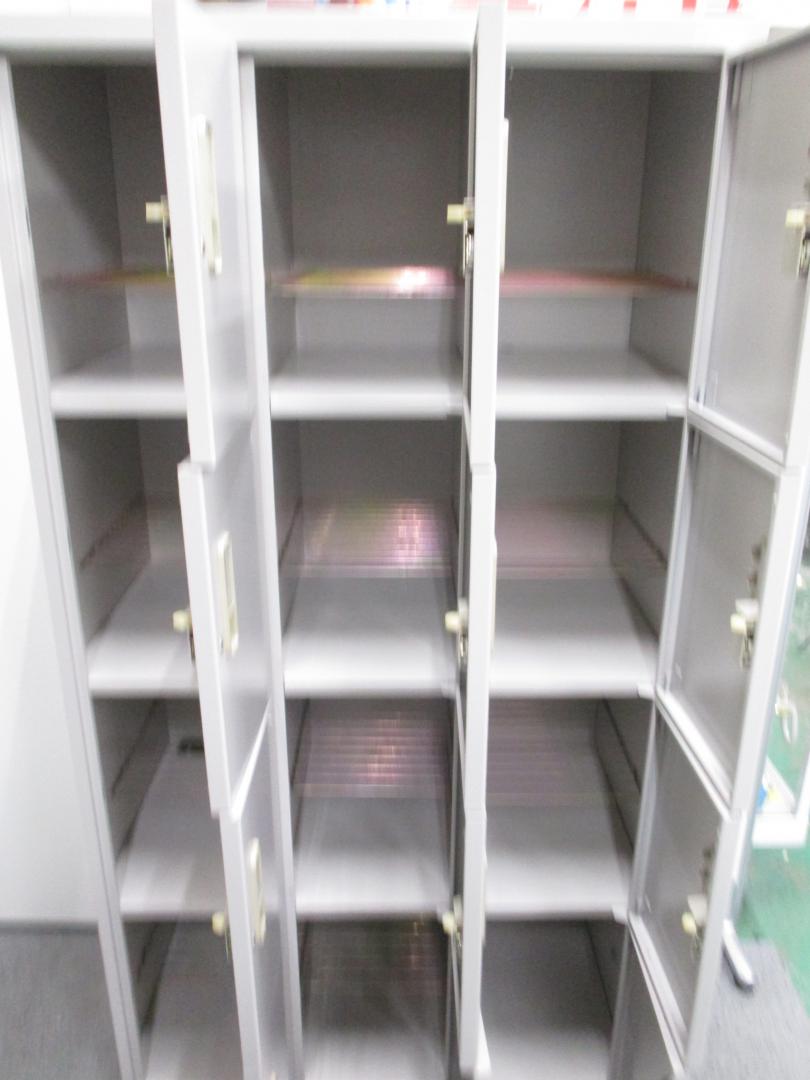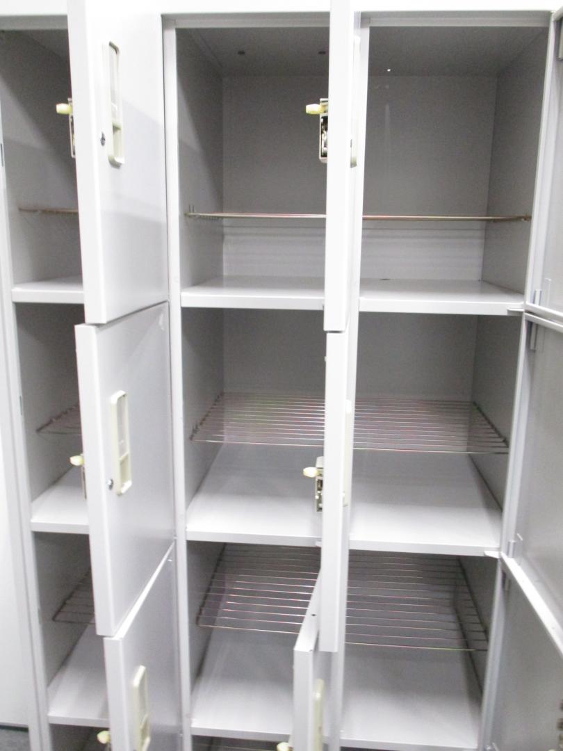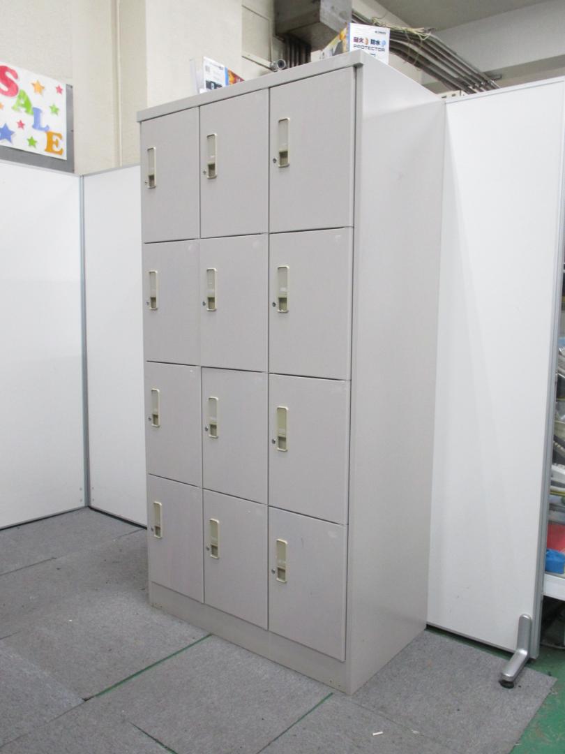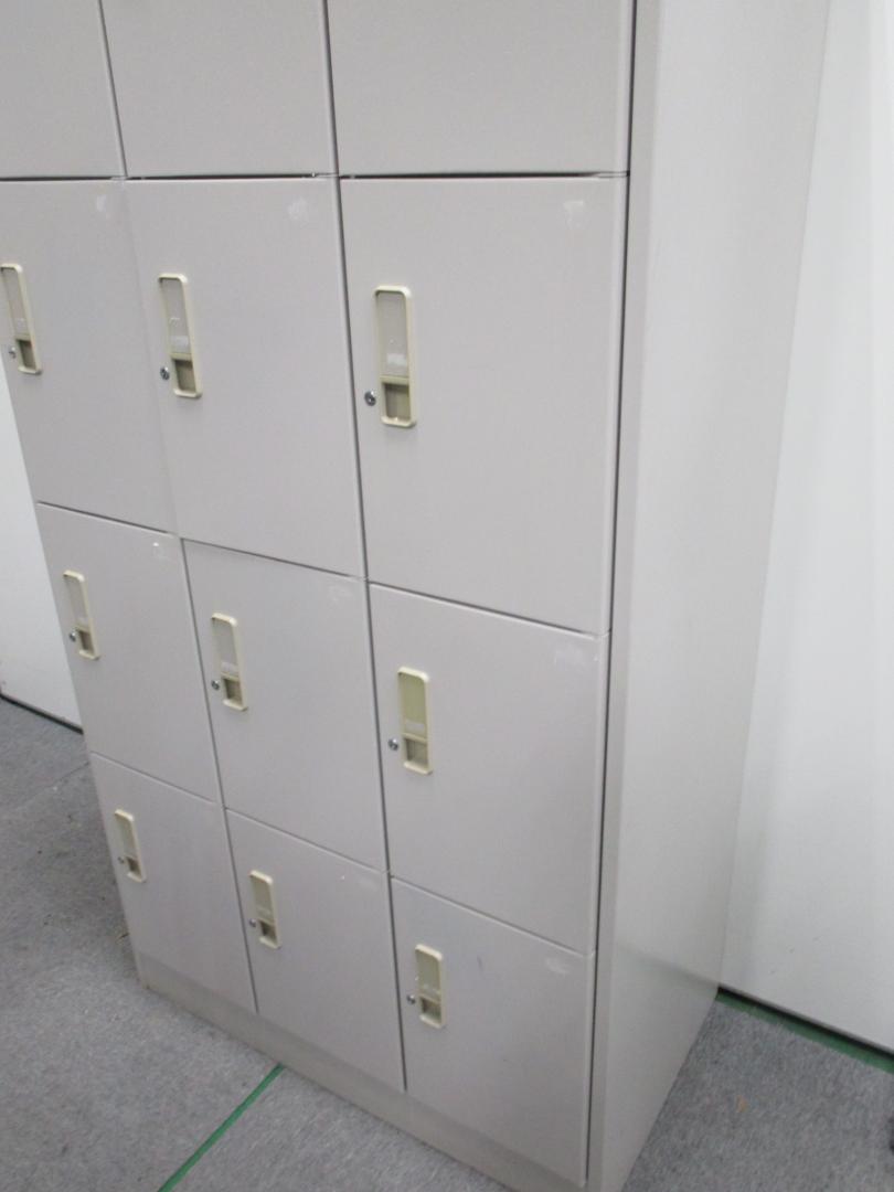 【5台入荷!状態良好】スチール製 多人数用ロッカー 12人名収納可能 3列4段 シューズボックス 【中古オフィス家具】- 池袋店