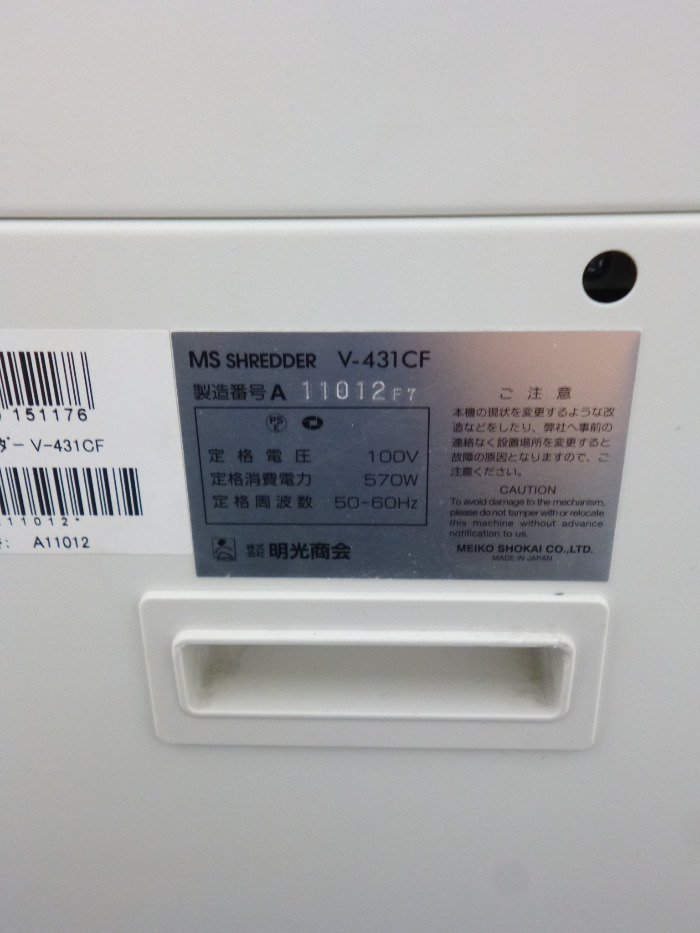 【中古】 MS-V431CF 明光商会 シュレッダー 163049
