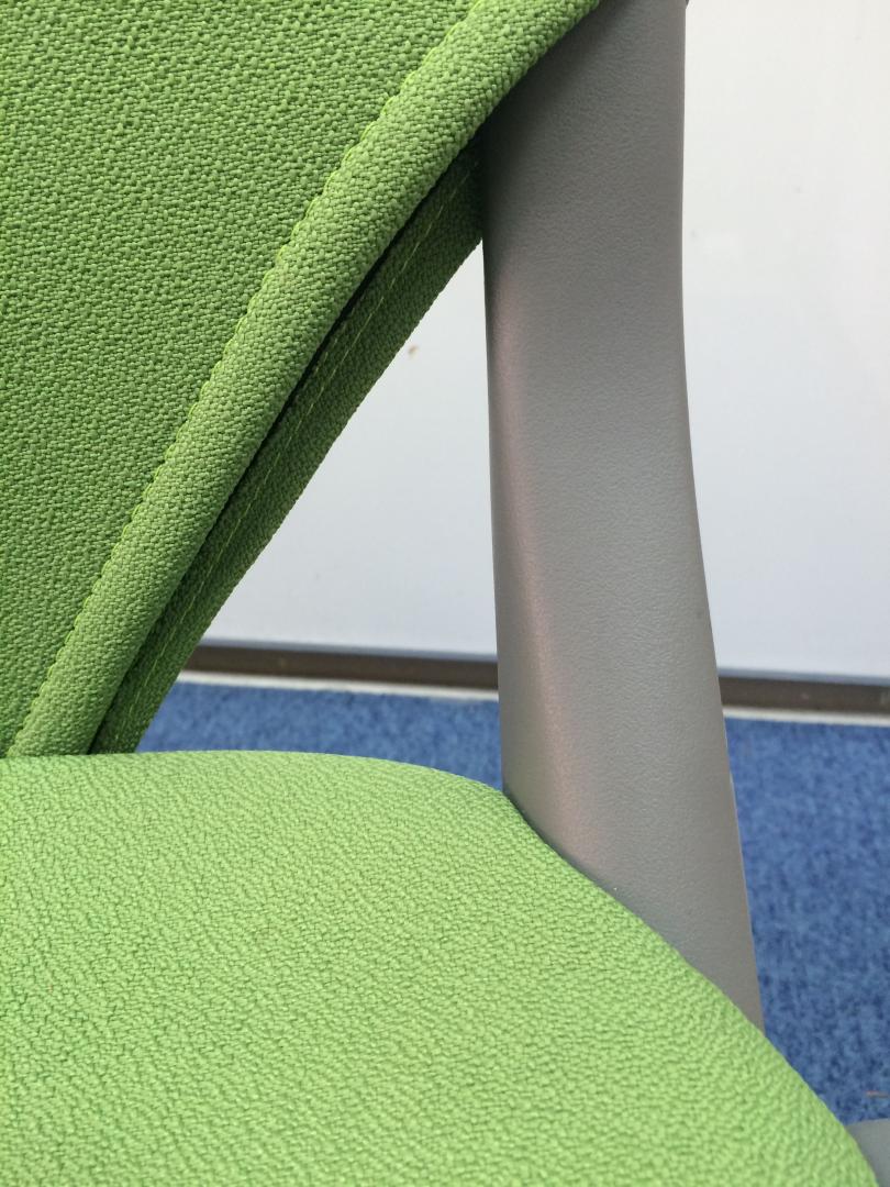 - あり黄ばみ・変色が広い範囲にうっすらある、または濃い黄ばみ・変色が一部ある。(例、座面・背もたれ、脚部等にある。)