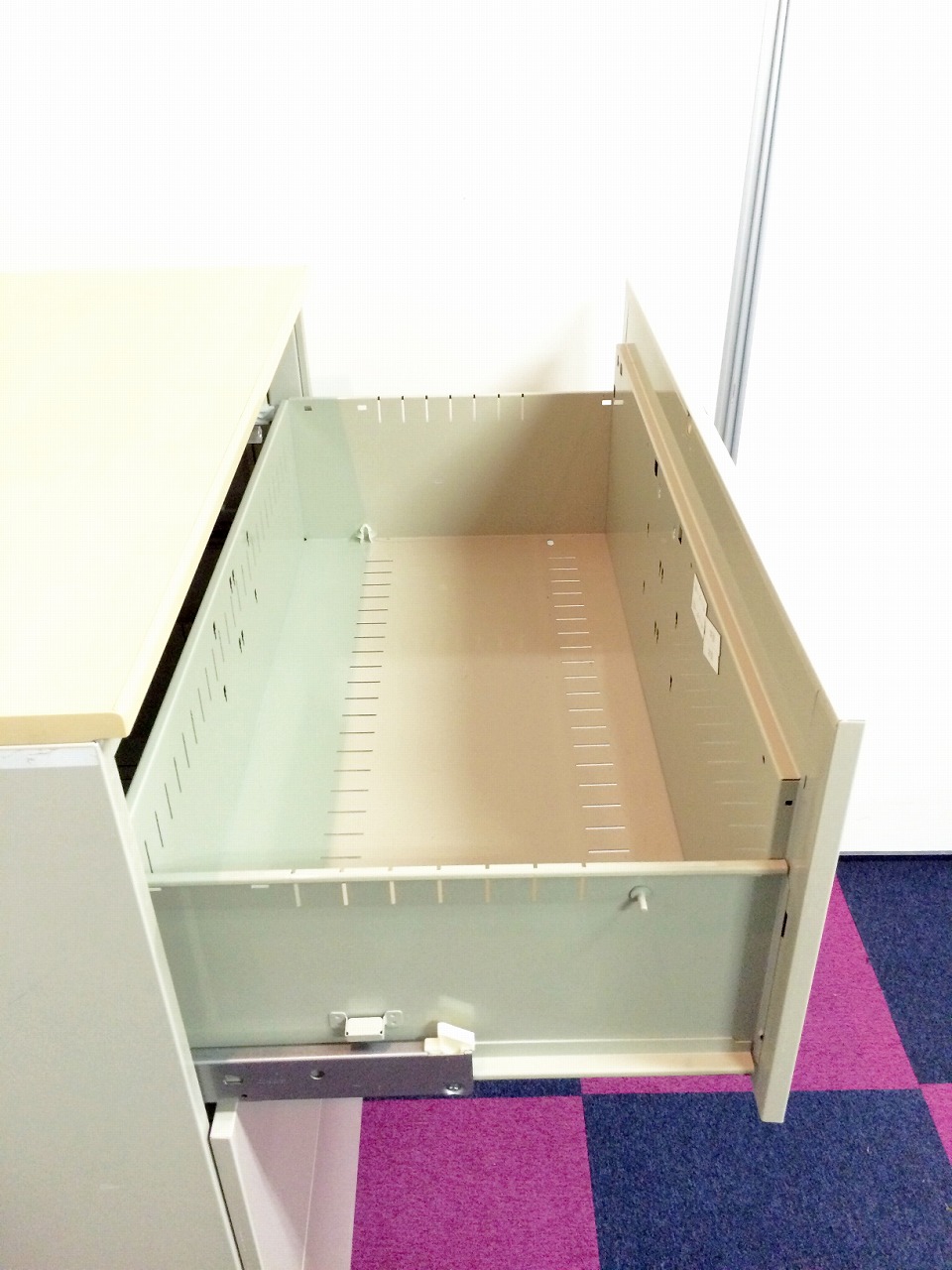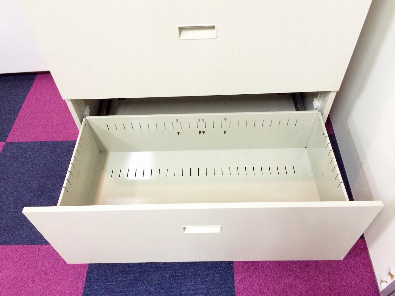 - 一部不具合ありそ引出の開閉不可、施錠不可、棚板無しといったの書庫の本来の効用を果たすための機能以外の一部が使用不可(例、扉、引出の開閉がしづらいなどがある。 )