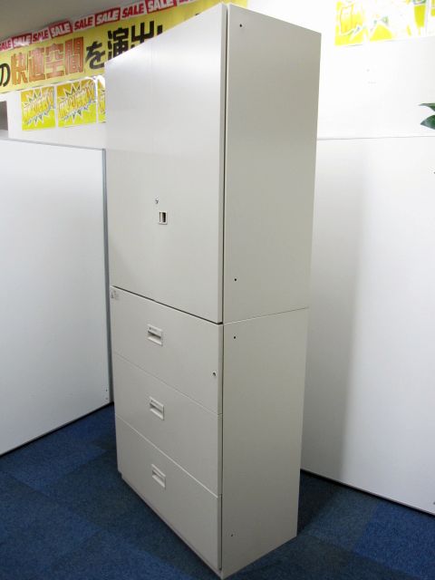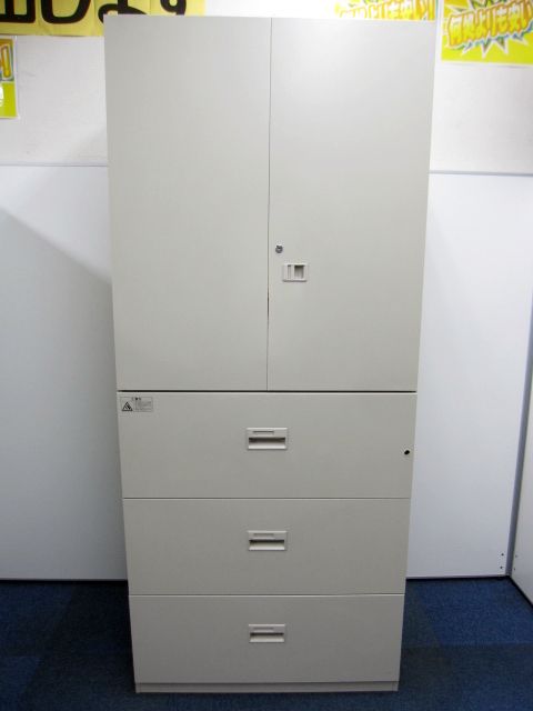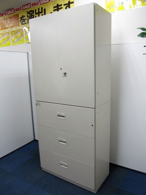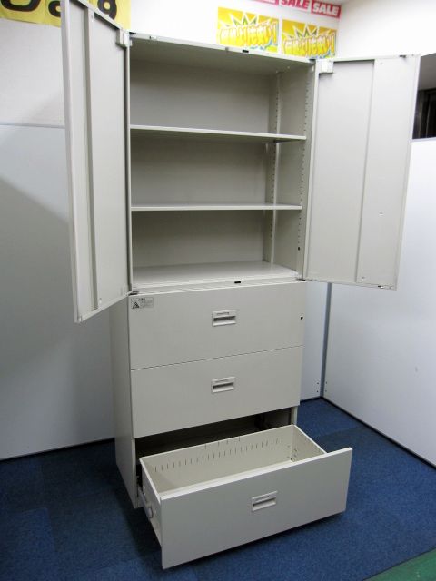 【おつとめ品】【書庫セット】ライオン製 デリカウォール 上段:両開き+下段:3段ラテラル の書庫セット【扉にサビと不具合ある為お安くご提供】- 品川・三田店