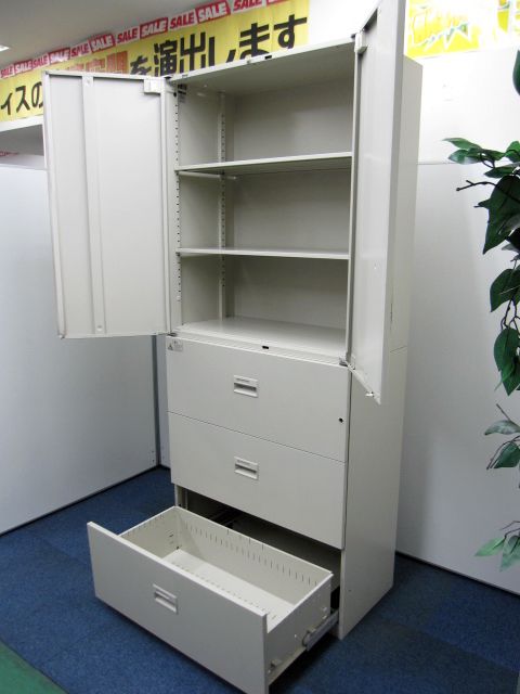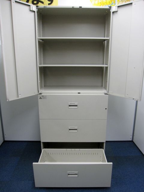 - 一部不具合ありそ引出の開閉不可、施錠不可、棚板無しといったの書庫の本来の効用を果たすための機能以外の一部が使用不可(例、扉、引出の開閉がしづらいなどがある。 )