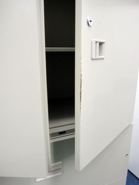 - 多数不具合あり引出の開閉不可、施錠不可、棚板無しといったその書庫の本来の効用を果たすための機能以外の多数が使用不可(例、扉、引出の開閉がしづらいなどがある。 )