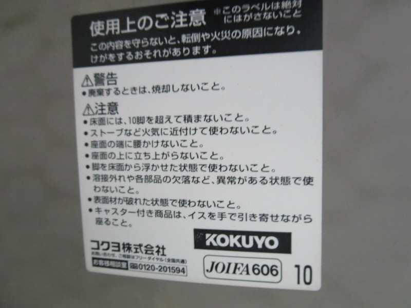 コクヨ製のスタッキングチェアが4脚入荷致しました。