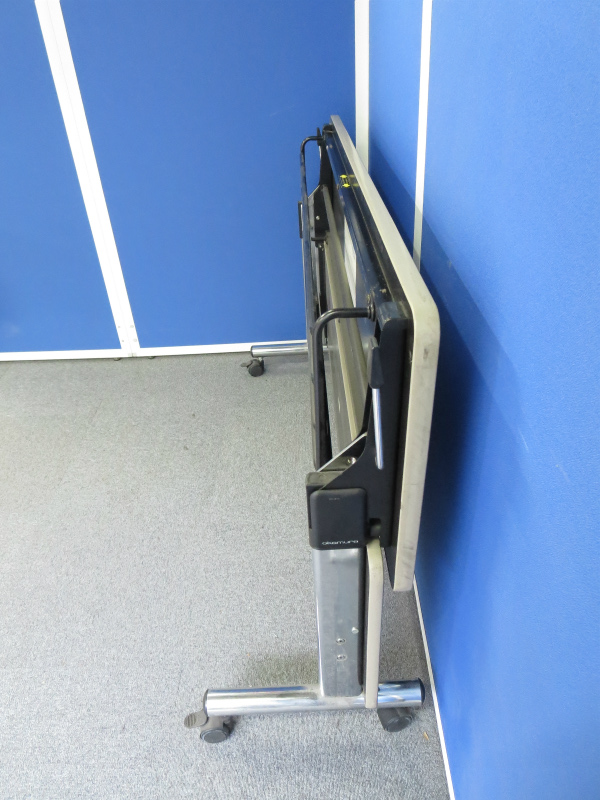 - 一部不具合あり天板歪み、アジャスター無し、キャスター使用不可ようなそのテーブルの本来の効用を果たすための機能以外の一部が使用不可な状態。(例、キャスターロッ ク機能使用不可、棚板無し等がある。)