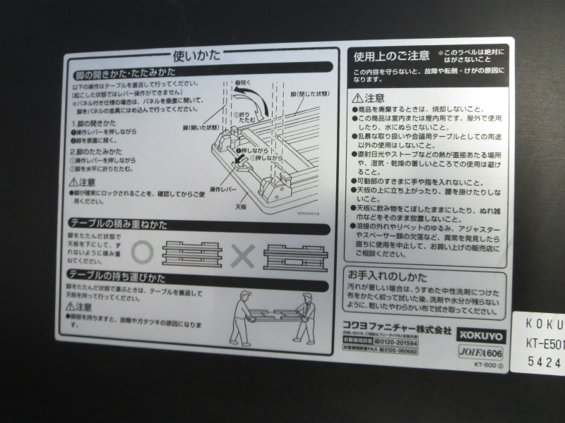 コクヨ製の折り畳みテーブルが1台入荷致しました。