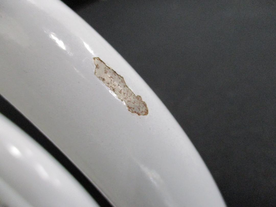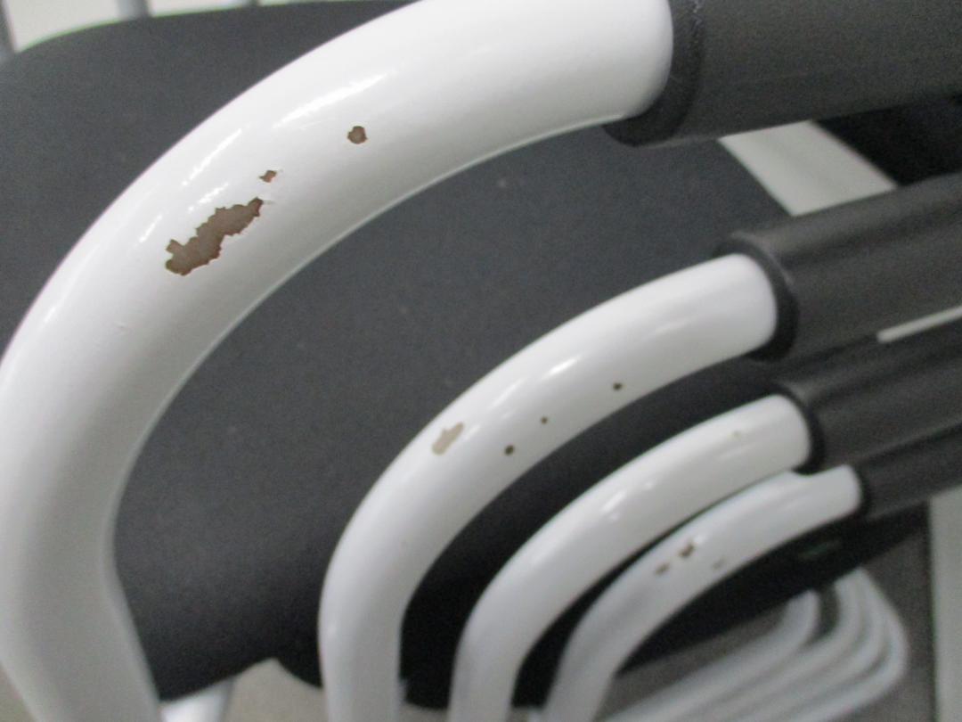 - かなり強い濃い黄ばみ・変色が商品全体にある。(例、座面・背もたれ、脚部等にある。)