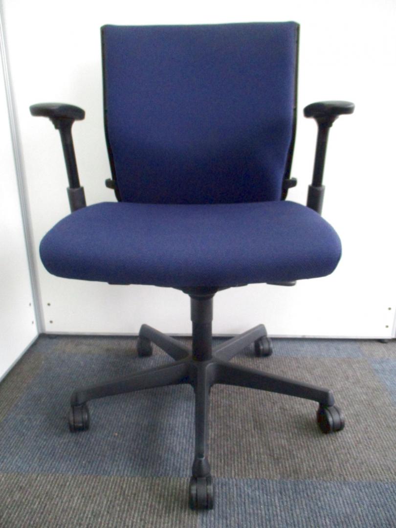 【関西倉庫在庫】■オカムラ(okamura)製 エスクードチェア 肘付ローバックチェア ■ダークブルー×グレーシェル ■デザインアーム ■ランバーサポート 【弊社使用欄:A01029268】