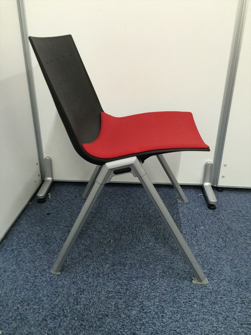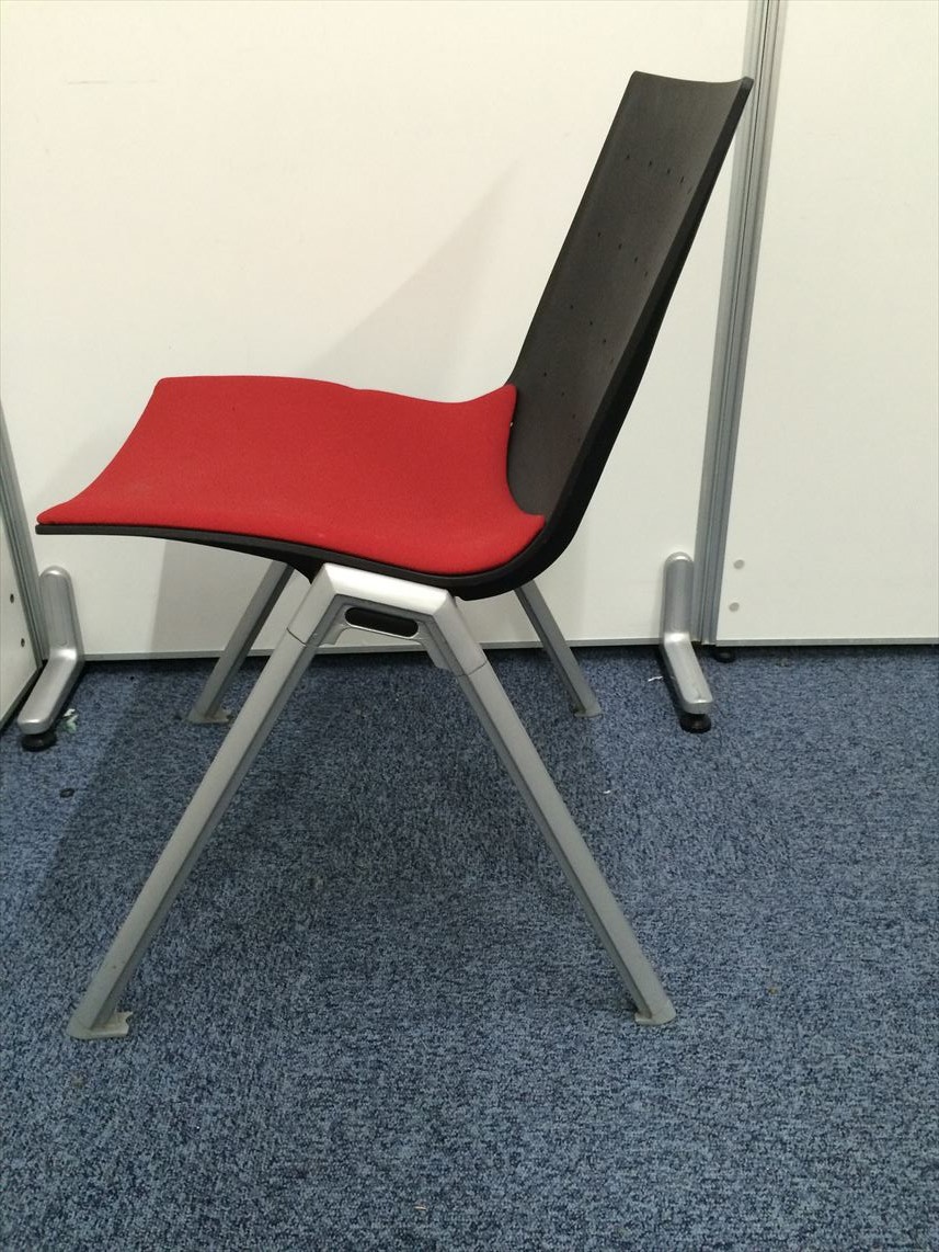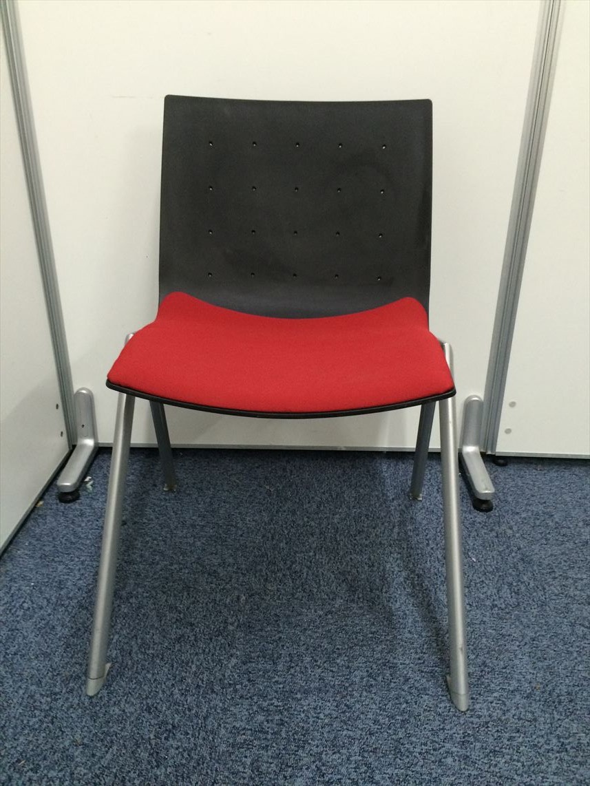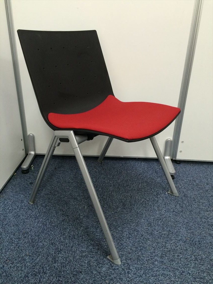 【明るい事務所の演出に!】内田洋行製 MX-250シリーズ スタッキングチェアー 明るいレッド!- 名古屋本店