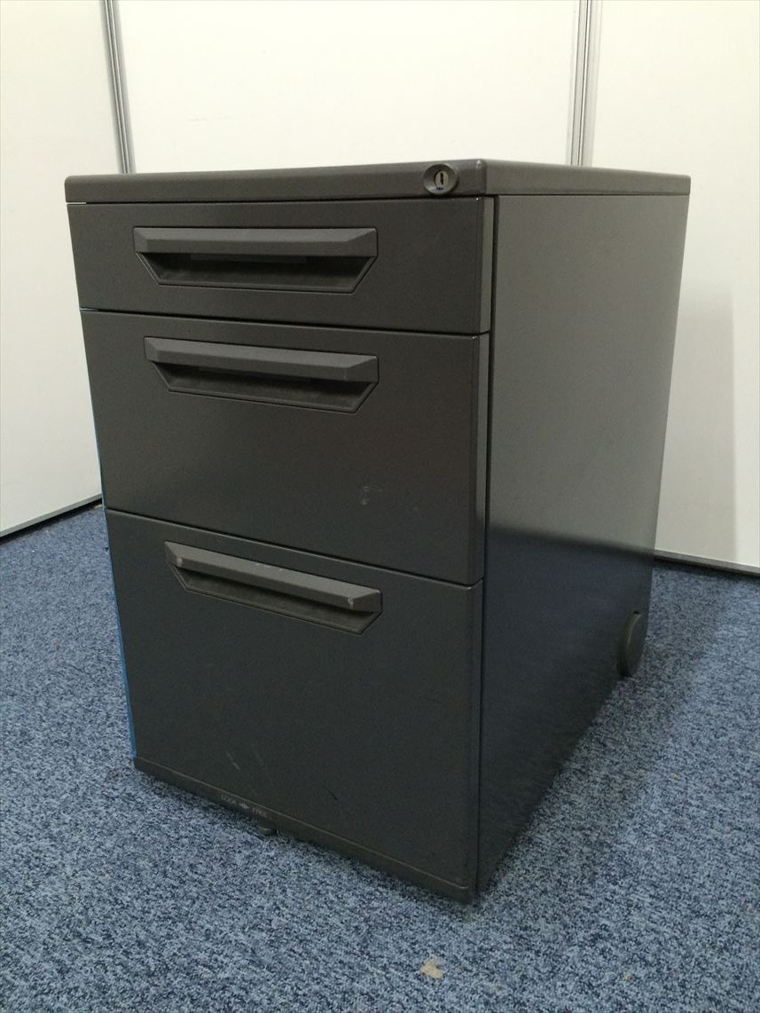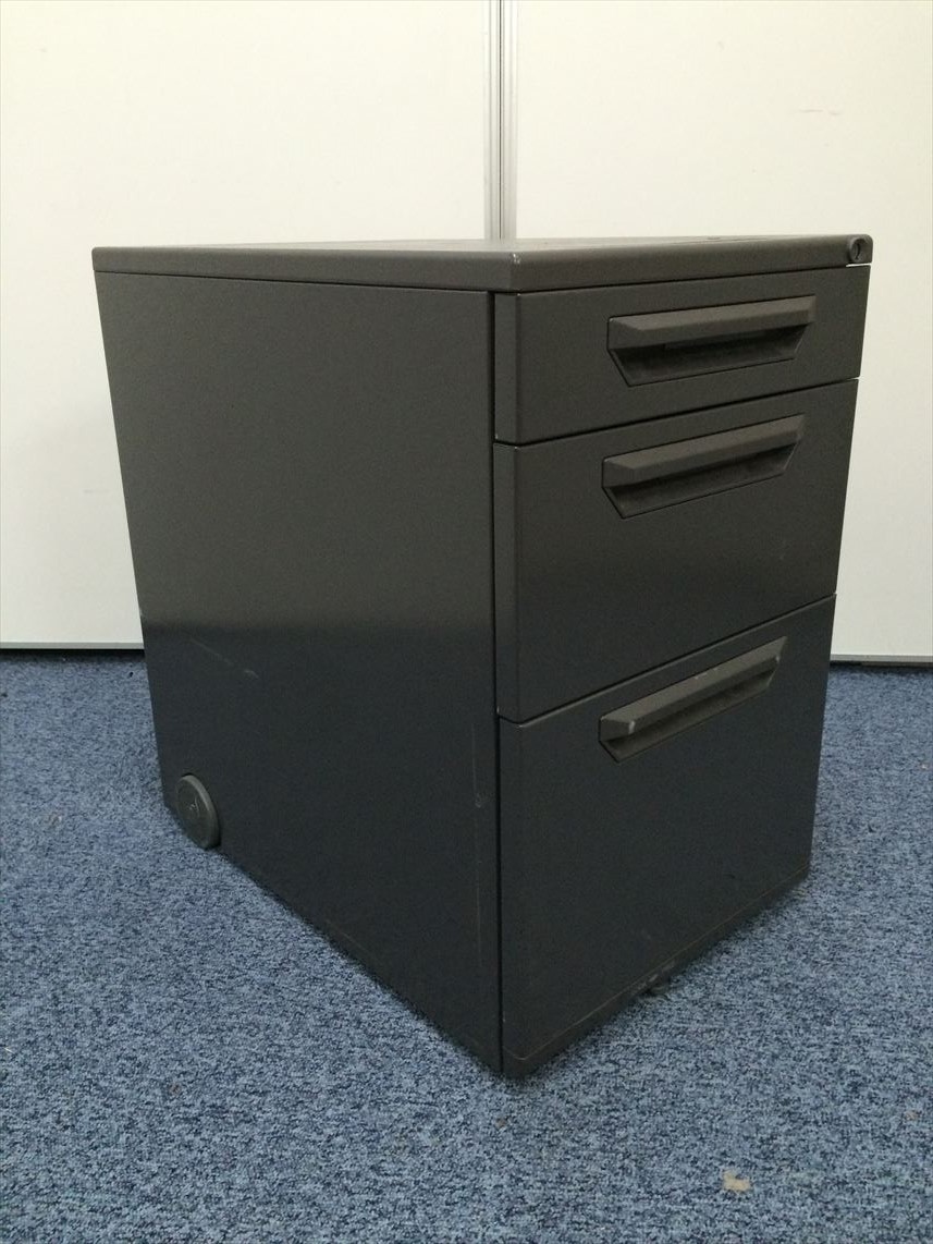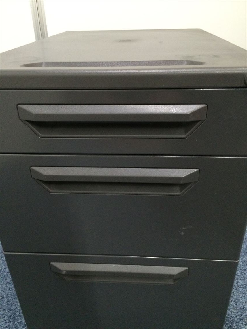 【セット商品】平机(W1100)+3段ワゴン おしゃれなブラックが基調となったセットです。- 名古屋本店