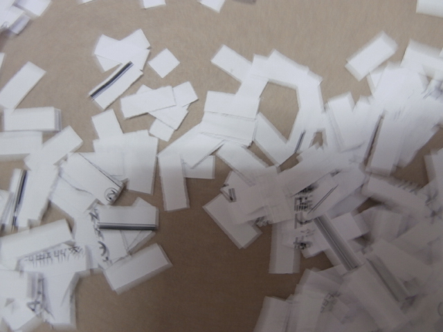 縦切り&横切りによる小さな細断面積で、機密保持を徹底。