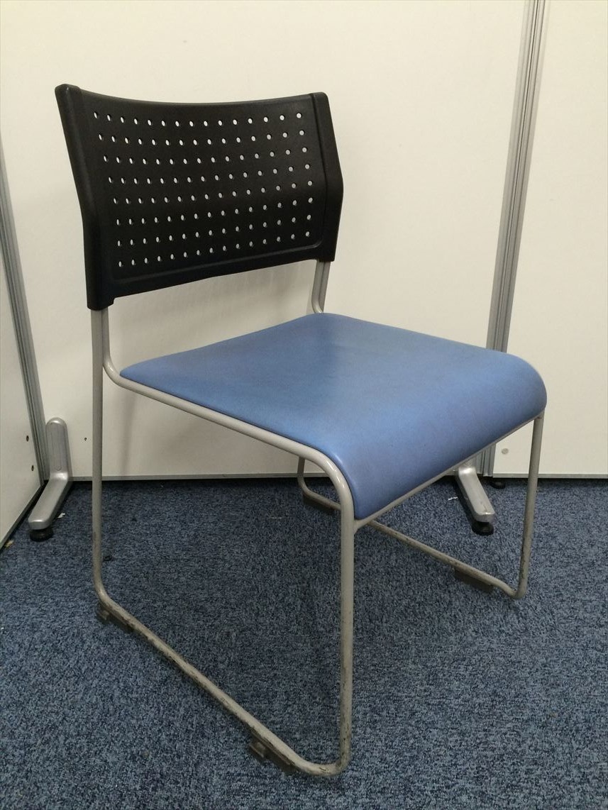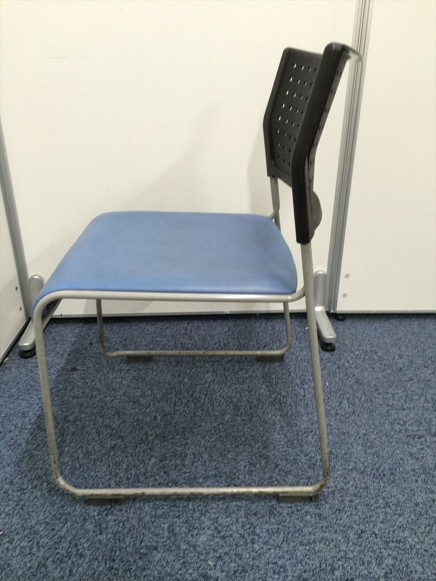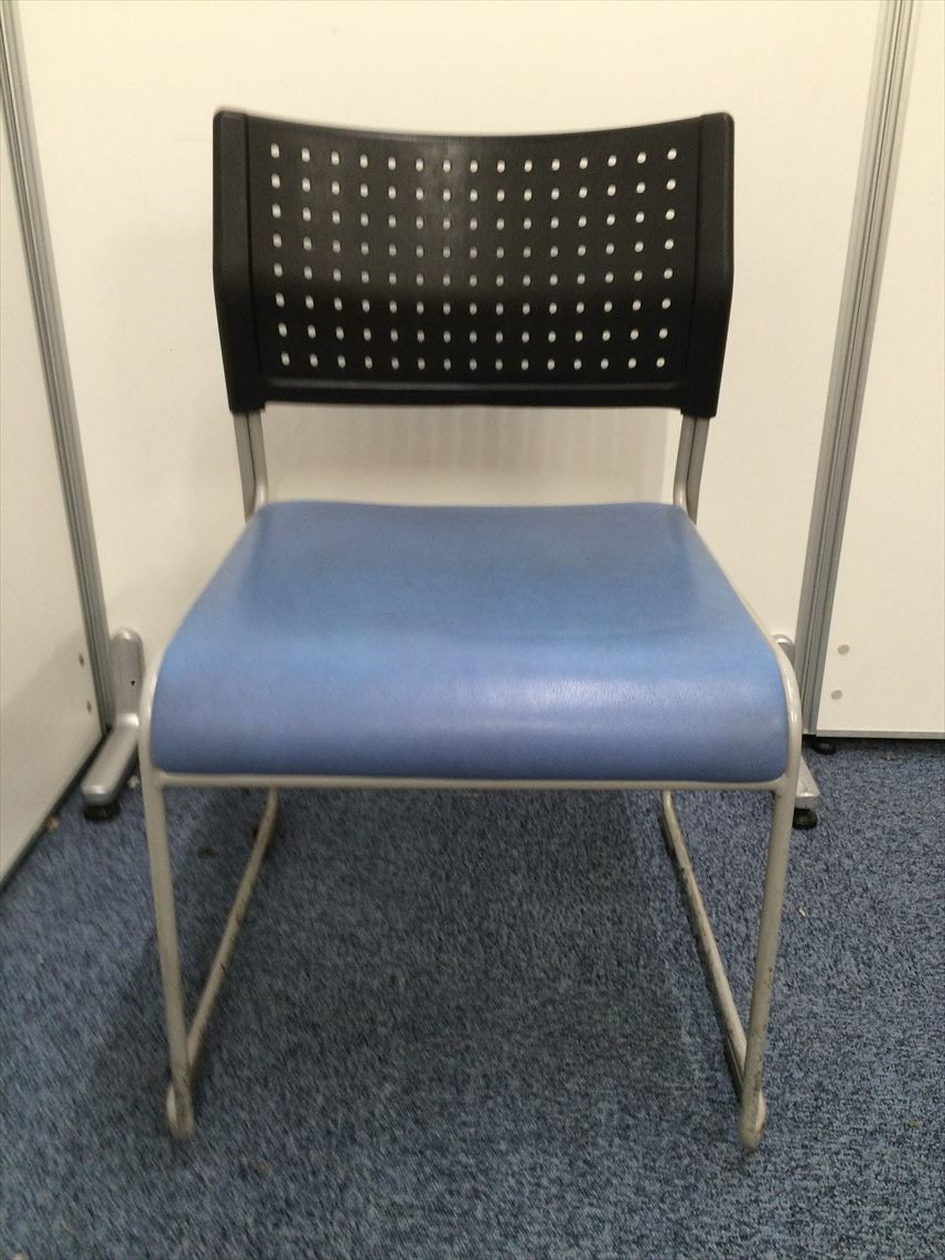 11脚在庫あります!!座面ビニール地 スタッキングチェア座面ブルー- 名古屋本店