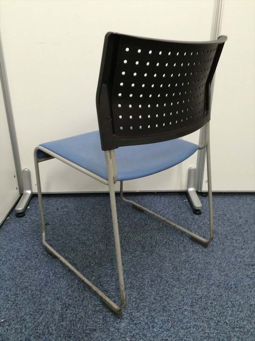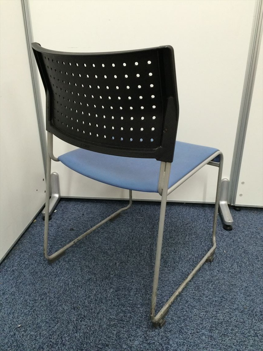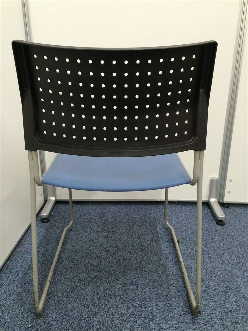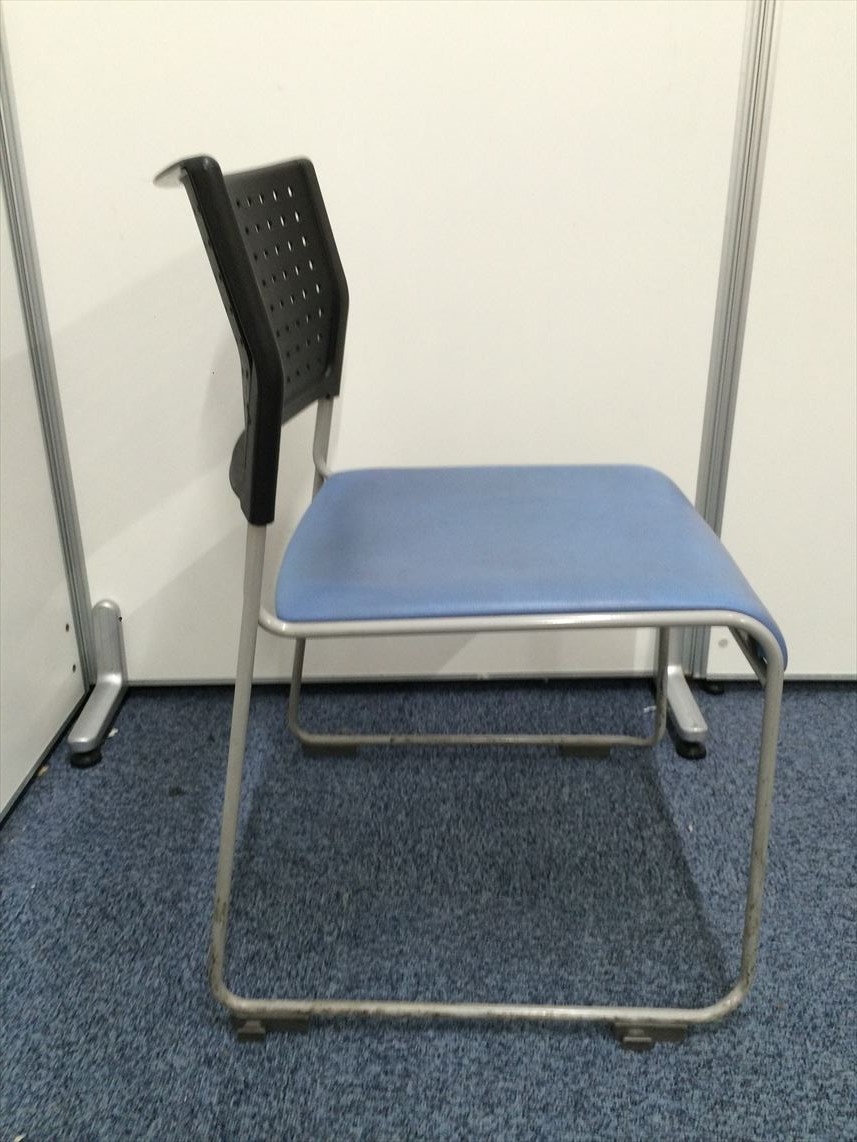 11脚在庫あります!!座面ビニール地 スタッキングチェア座面ブルー- 名古屋本店