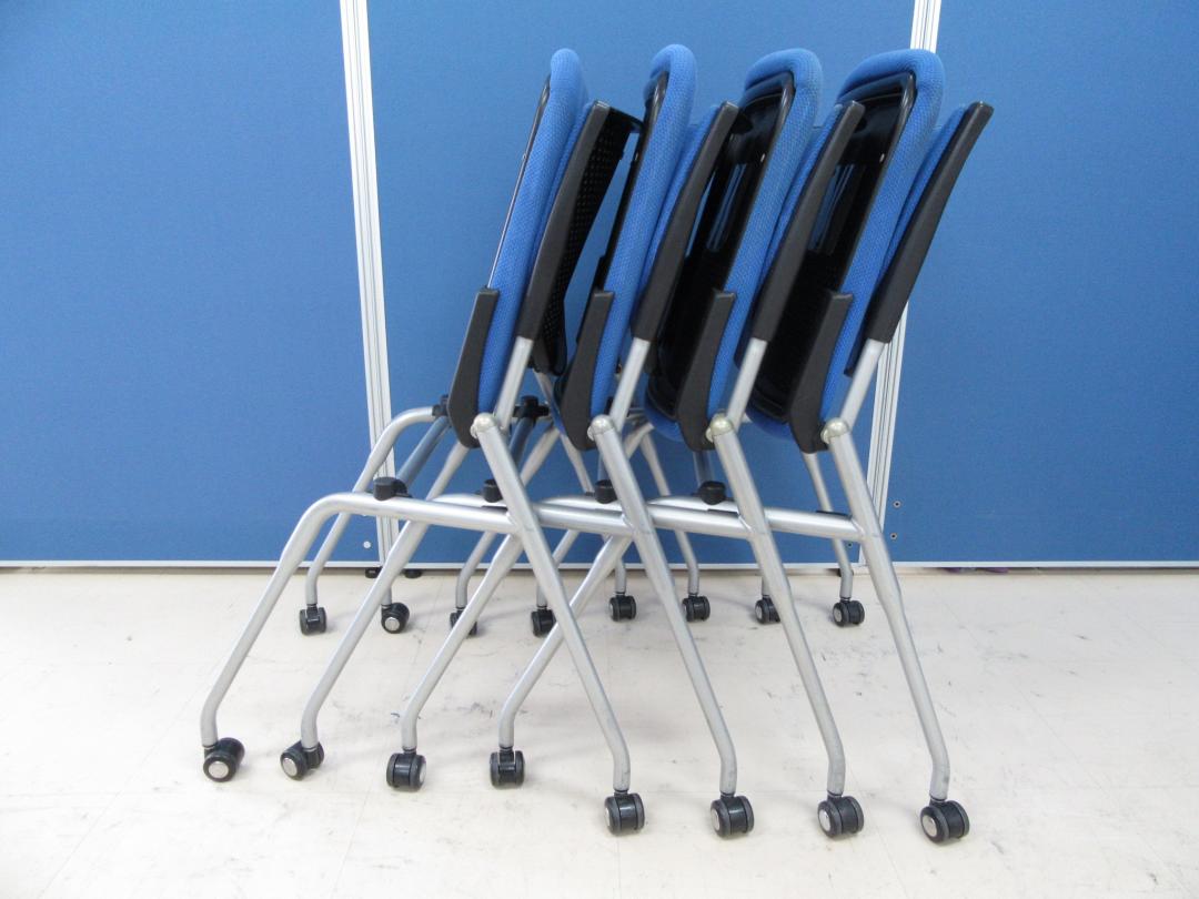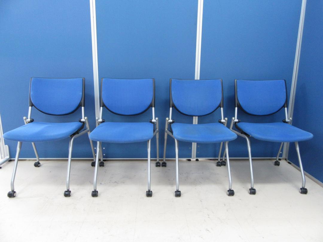 【4脚セット!】岡村製作所(okamura) プロスタックチェア ブルー■使用しないときは畳んで収納可能です!【ネスタブル】- 足立・葛飾店