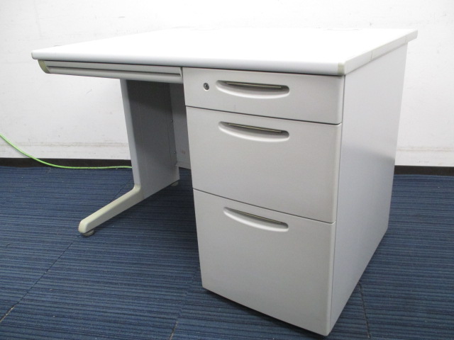 【コンパクトでスタンダード!使いやすい引き出し付きデスク!】■オカムラ(okamura)製 SD-Vシリーズ 平机+ワゴンセット(片袖机) 引き出し付き W1000㎜ ■ライトグレー ※ワゴンは在庫状況によって変動致します。