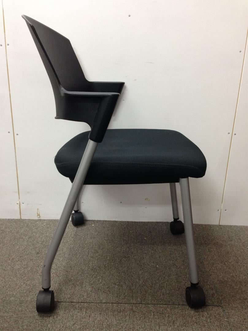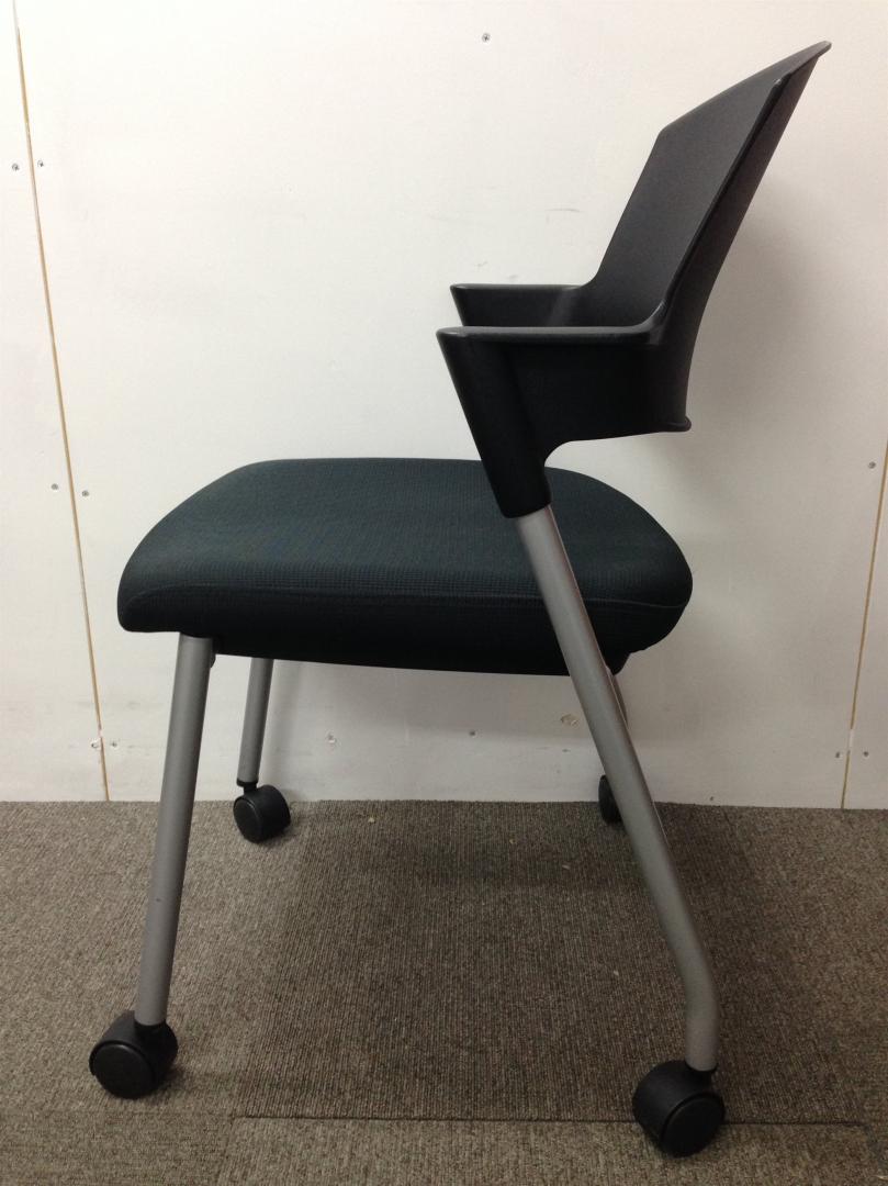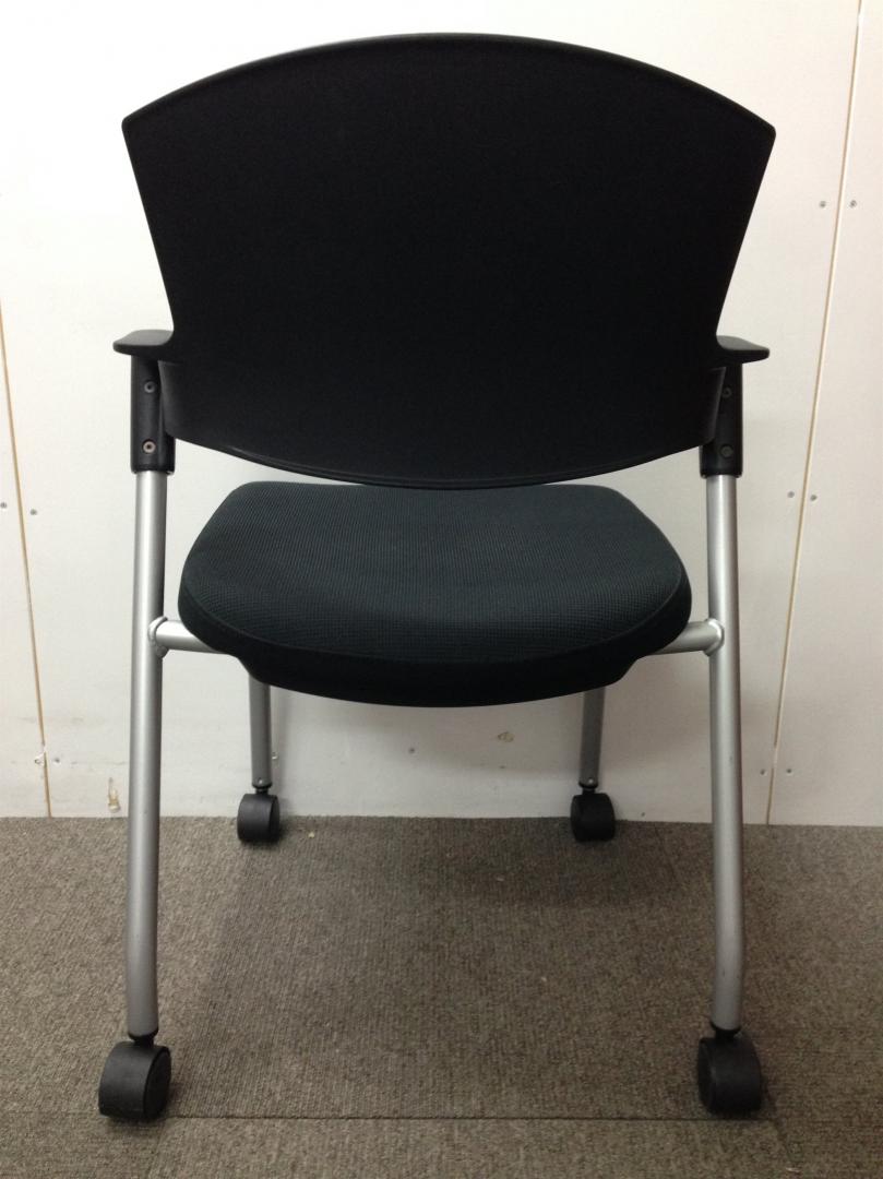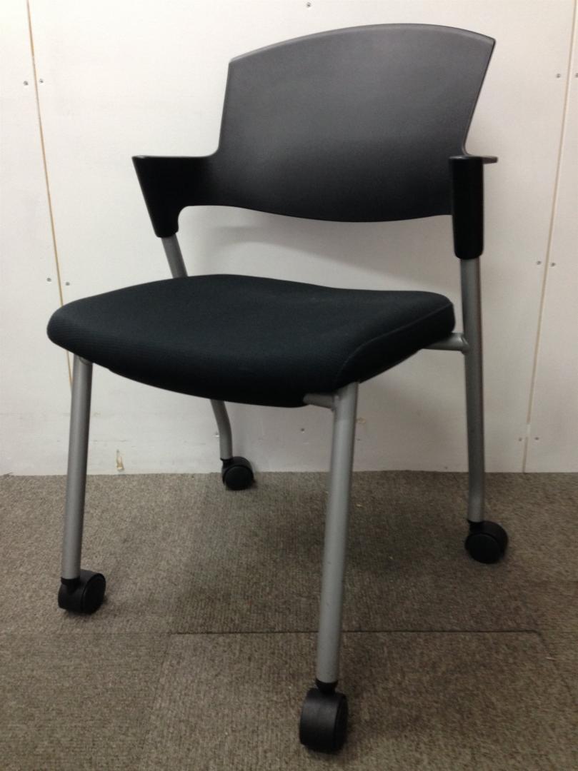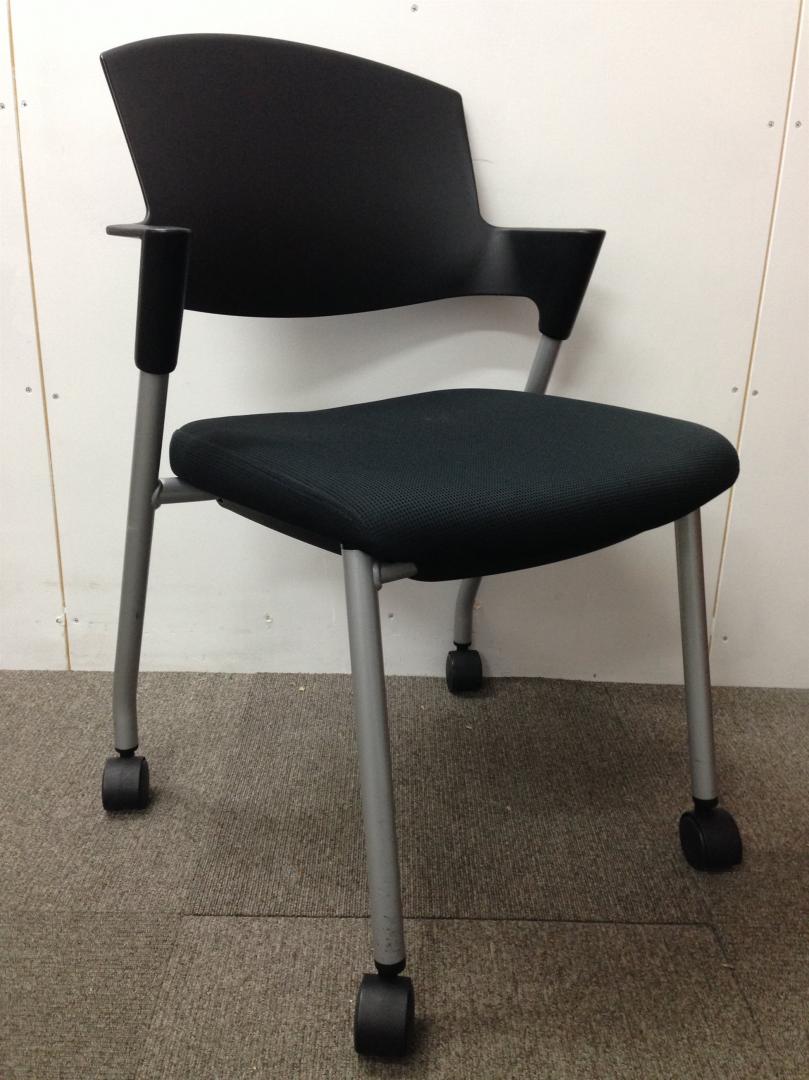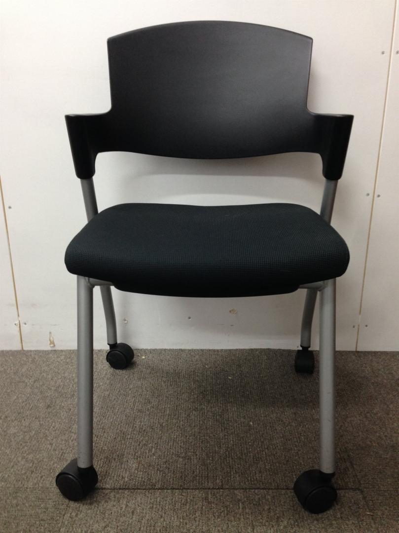 【シンプルスマートなスタッキングチェア!分厚いクッションで長時間でも快適な座り心地!】■スタッキングチェア 肘付ミーティングチェア ■固定肘 ■キャスター付 ■ブラック ■背面樹脂/コクヨ(KOKUYO/プロッティ