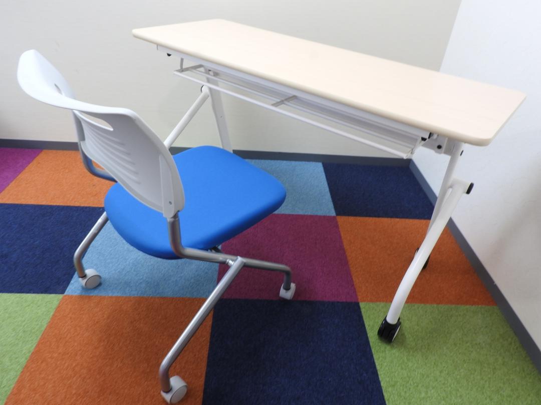 チェアはデスクの上や中に入れて保管しております。もちろん試座も可能ですので、お気軽にお申し付けください!