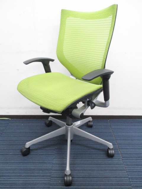 [清掃済み]バロンチェア可動肘タイプ ■ライムグリーン ■ローバック ■シルバーフレーム ■座面メッシュ■バロン(Baron)【hi_class】【クリーニング済】サーキュラーバリューCO2削減量の算出について