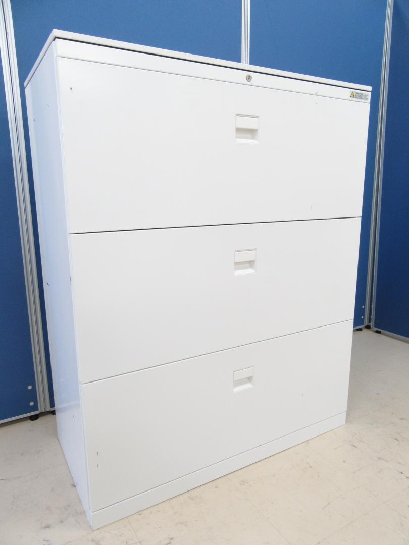 【オフィス書類をスッキリ整理!】■オカムラ製 3段ラテラル書庫 ホワイト天板付き ■ファイル収納にオススメ!引出し型キャビネット!【在庫入替セール品】