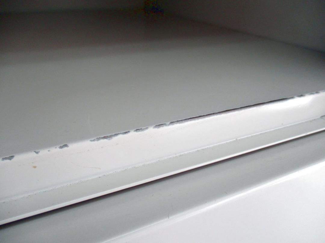 - かなり強い黄ばみ・変色が商品全体にある。(例、天板、正面、背部、サイド部分にある。)