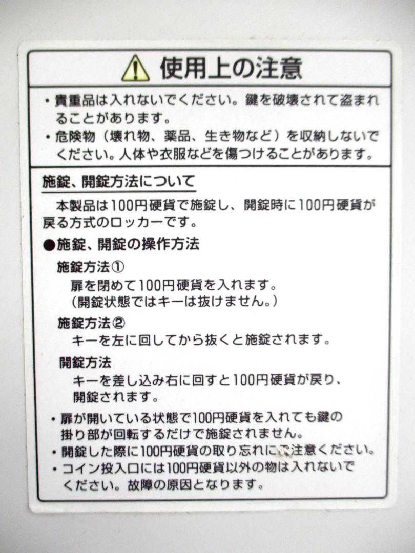 - 好調そのロッカーに備わっている全ての機能が使用可能